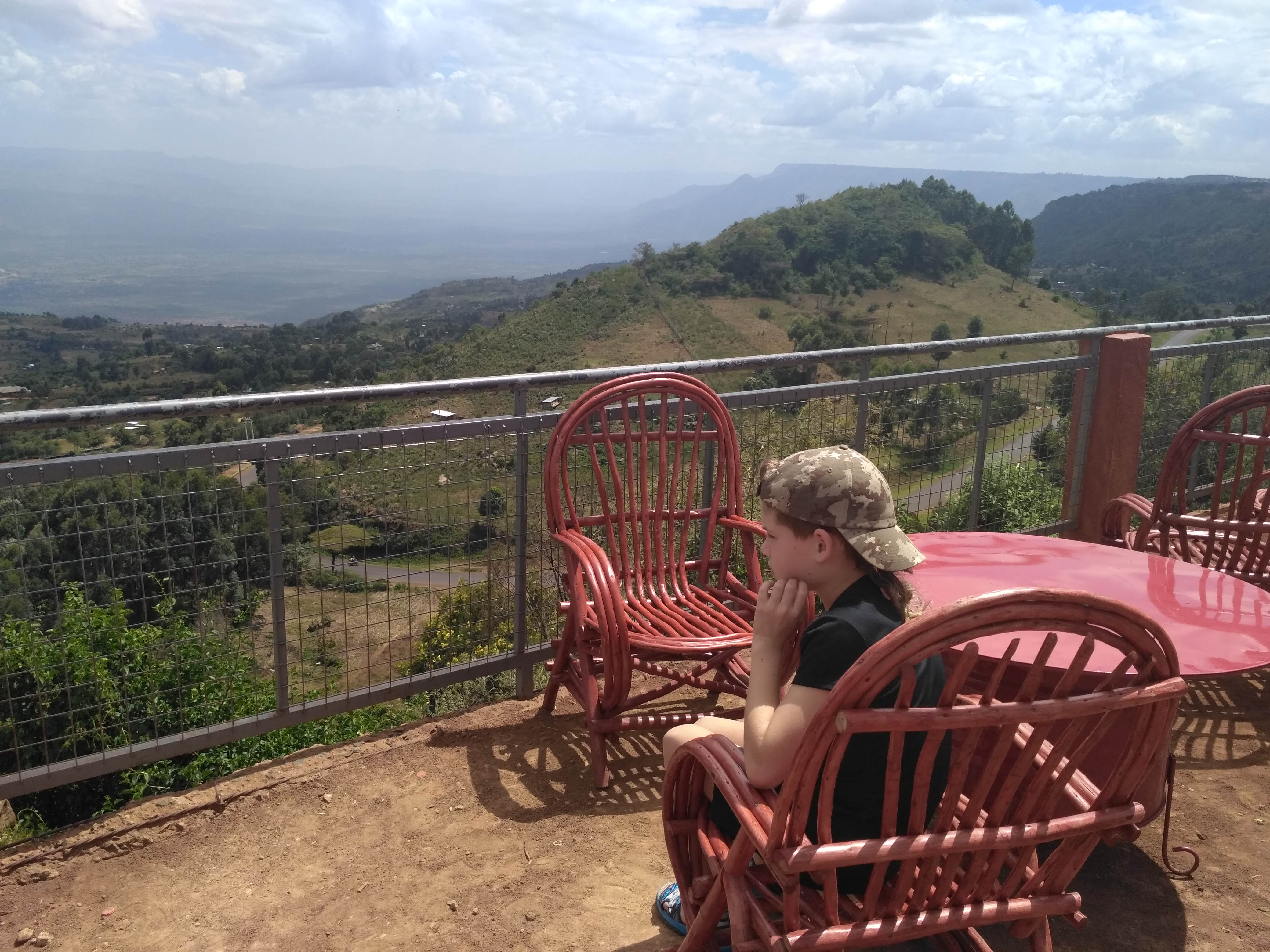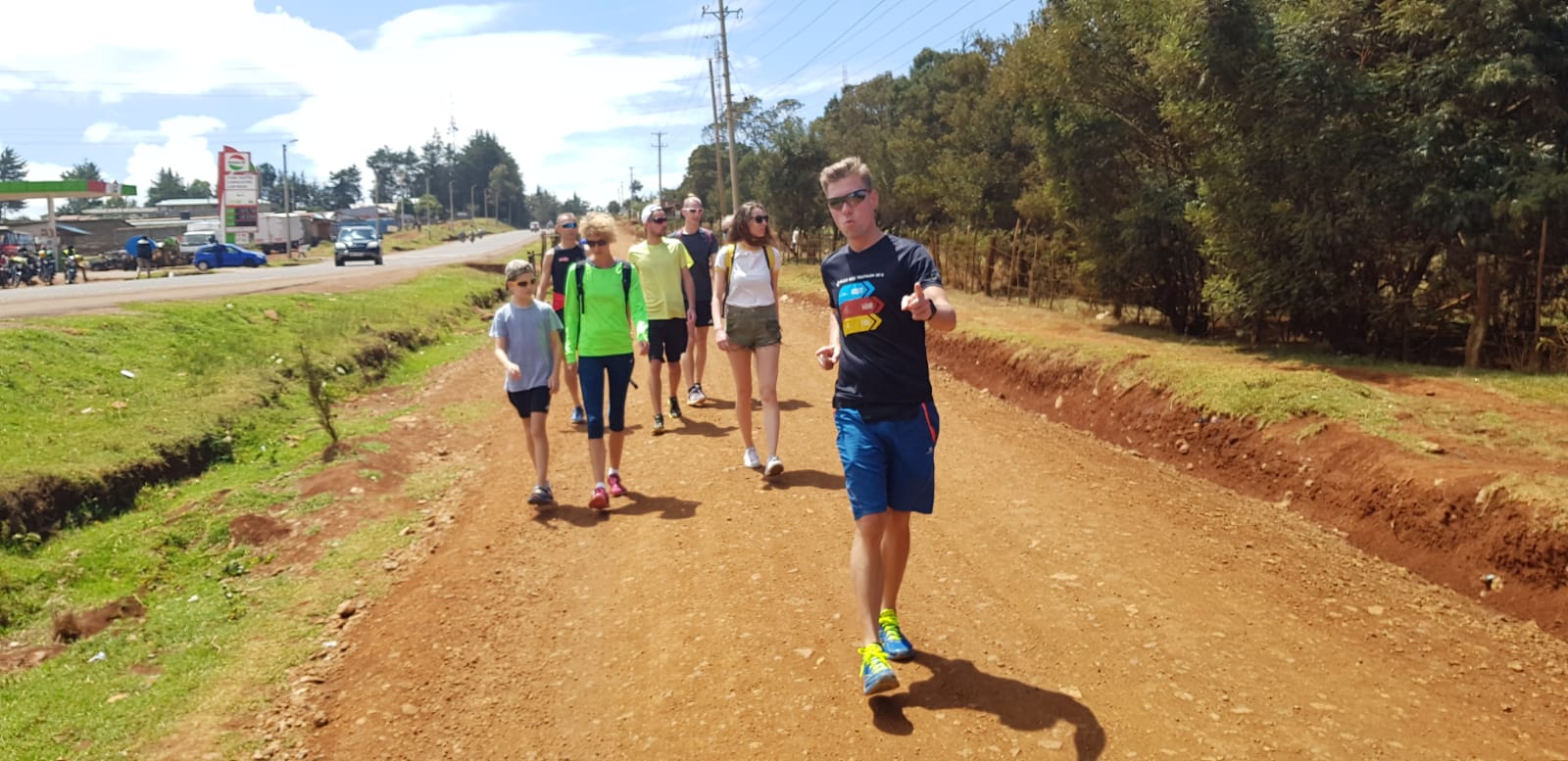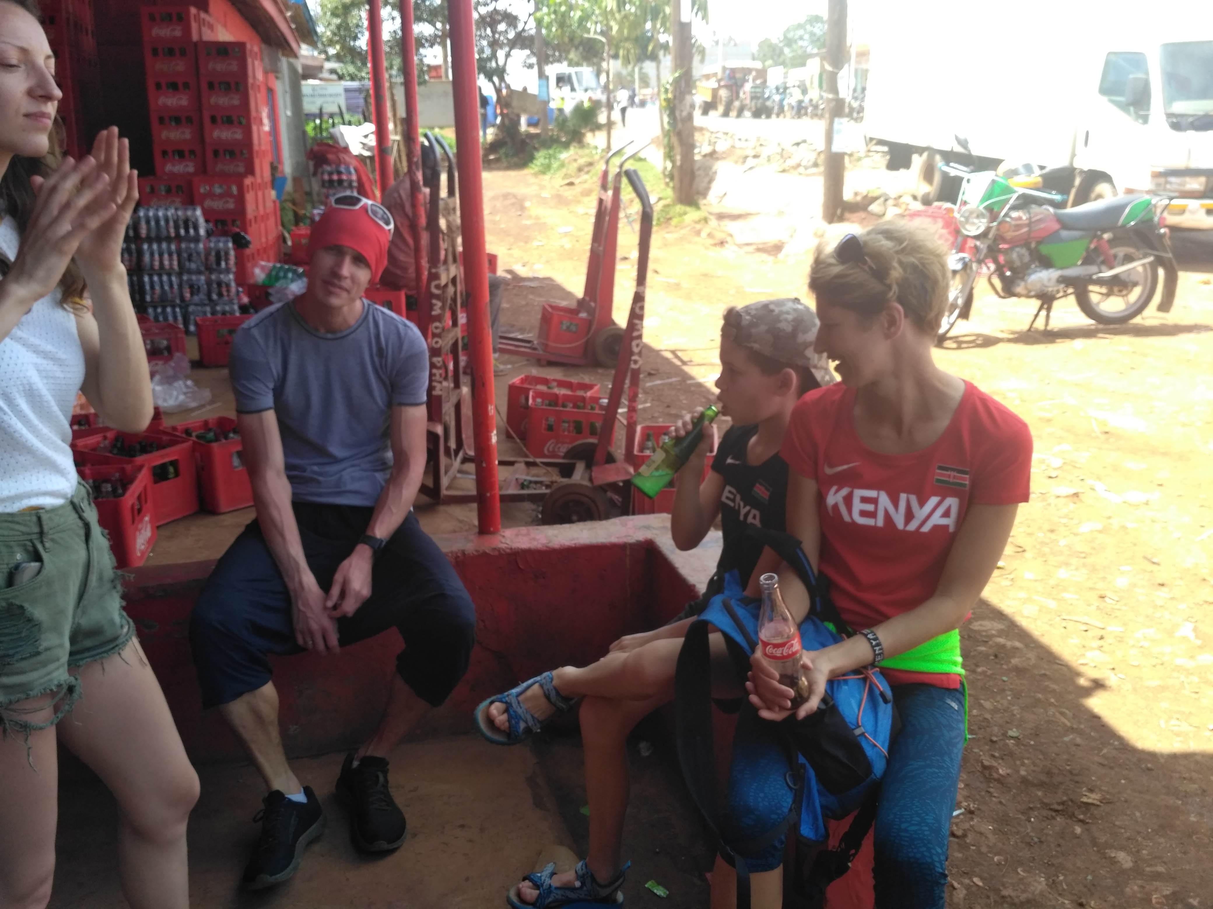 Po drodze kupiliśmy sobie samosę, rodzaj pierożka z mięsem, smakuje trochę jak sajgonki. Poszliśmy do drugiej bramy wjazdowo/wyjazdowej (słynne bramy z napisem „Welcome to Iten, home of champions”/”Thanks for visiting home of champions”) i dalej na punkt widokowy, który leży na wyjeździe z Iten. Jeden z siedzących tam Kenijczyków zaoferował się, że zrobi nam wspólne zdjęcie. Pstryknął ich chyba z dziesięć, ale na każdym jest jego palec, którym zasłonił pół grupy.