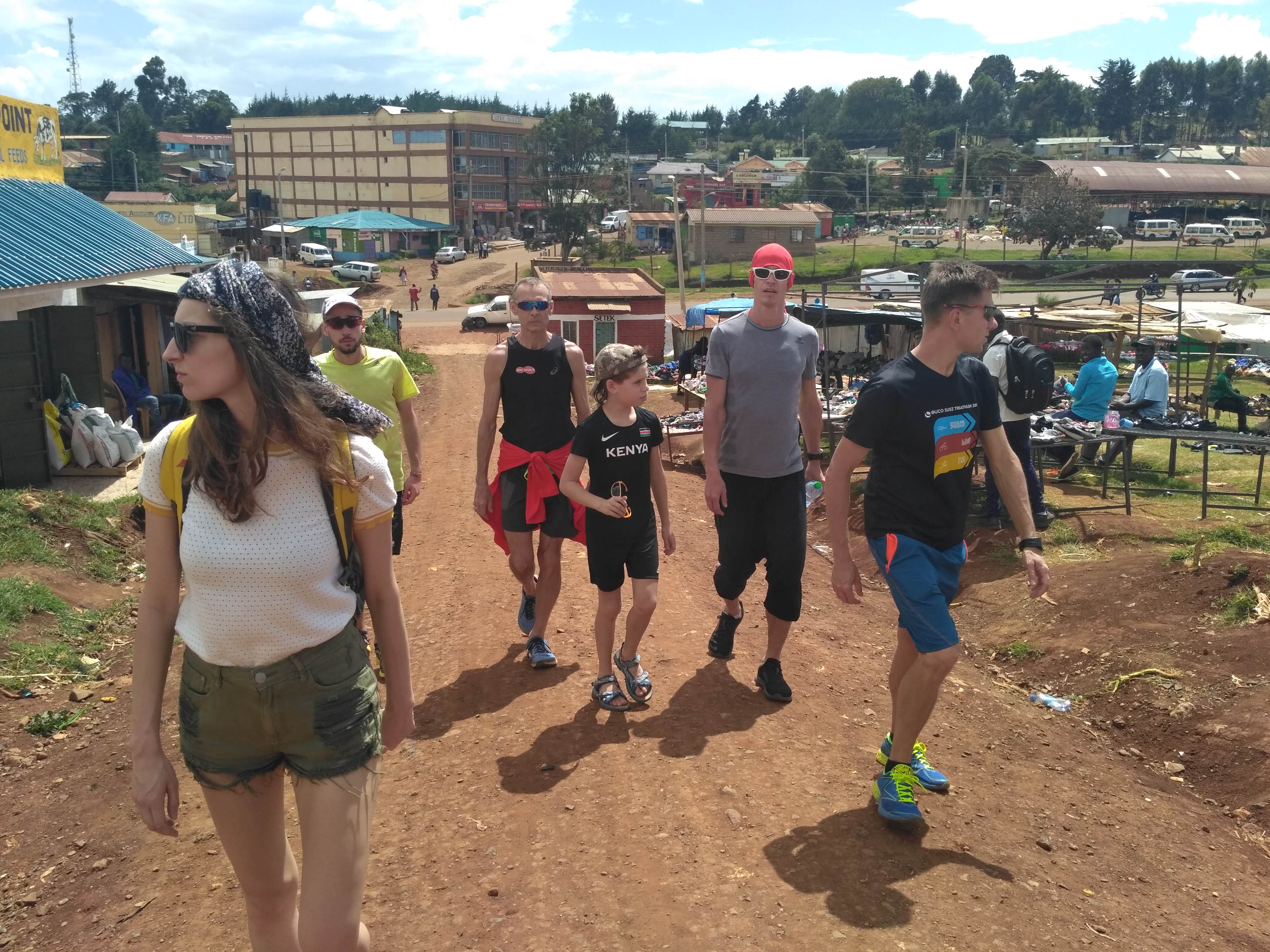 Wracając przeszliśmy przez miejscowe targowisko i poszliśmy na herbatę i małą przekąskę do hotelu na piętrze. Antek nerwowo spoglądał na zegarek. W drodze do centrum zaszliśmy do sklepu sportowego. My z Jankiem kupiliśmy sobie po t-shircie z flagą kenijską. Antek i Michał poprosili o odłożenie kilku koszulek do godziny 15. Teraz Antek się denerwował, czy na pewno nikt mu ich nie wykupi. Koszulki czekały na nich pod ladą. Udało się stargować cenę i zadowoleni z zakupów poszliśmy już do domu.