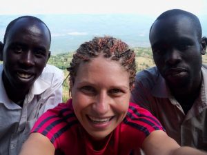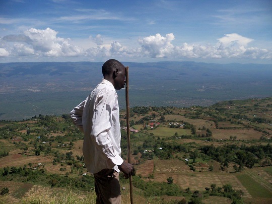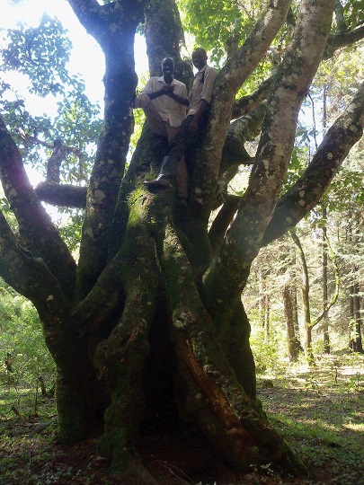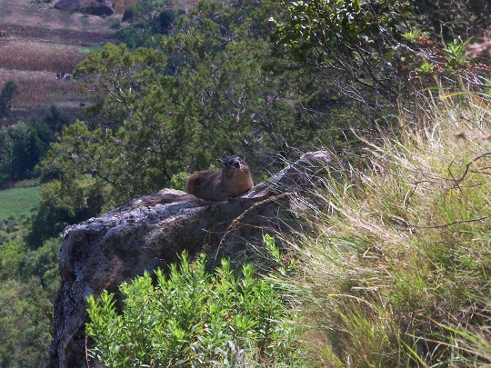 Skręciłam z głównej drogi i po przejściu około kilometra zaczął się las. Spotkałam dwóch chłopaków, którzy przez las szli do swoich domów. Zaproponowali, że mogą mnie oprowadzić po lesie. Szliśmy rozmawiając o ich życiu i moim w Polsce. Powiedziałam im, że chcę zobaczyć małpy. Potwierdzili, że jest tu ich dużo. I faktycznie po chwili małpy zaczęły skakać między drzewami na naszej drodze. Były całkiem spore biało czarne, bardzo szybkie. Nie mogłam zdążyć, by im pstryknąć fotę. Chłopaki biegali po lesie, ja za nimi polując z aparatem na małpy. Umieli udawać ich odgłosy i faktycznie to działało, bo wtedy małpy zaczynały się przemieszczać. Chodziliśmy tak po lesie półtorej godziny. Chłopcy pokazali mi też pszczeli ul, kawałek drewna ułożony na drzewie. Szli przede mną torując mi drogę przez zarośla. Potem zaprowadzili mnie na „punkt widokowy”, na który sami często przychodzą posiedzieć i porozmyślać. By tam dojść szliśmy przez pola, poprzedzielane zasiekami z drutu kolczastego i gałęzi. Dochodząc do skraju uskoku poślizgnęłam się na błocie i zjechałam kilka metrów na tyłku.Na wielkim głazie wylegiwał się góralek, po chwili uciekł. Chłopaki opowiadały mi o polowaniach na antylopy. Chodzą na nie w grupie 10 osobowej, z psami, raz w miesiącu i podobno udaje im się zawsze jakąś upolować. Potem doprowadzili mnie na drogę poza lasem, wskazali kierunek do Iten i się pożegnaliśmy. Wszyscy ci, których spotykam mają sylwetki zawodowych biegaczy.
