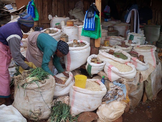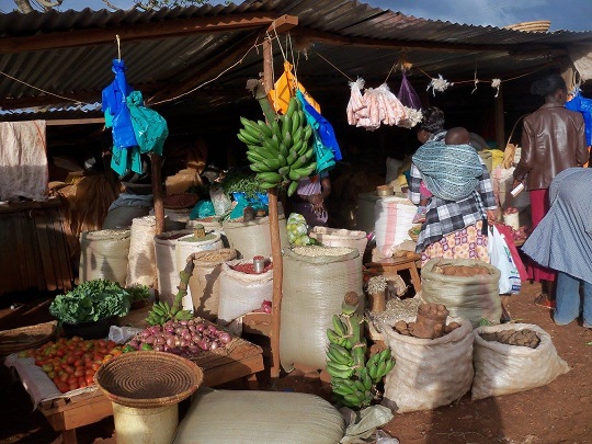 Spakowałam do plecaka kurtkę przeciwdeszczową na wszelki wypadek, aparat i telefon i poszłam się przejść. Dochodząc do centrum zdziwił mnie duży ruch, zapomniałam, że dziś sobota i znowu wszyscy zgromadzili się na rynku. Zupełnie nie kontroluję tu upływającego czasu, nie mam pojęcia jaki jest dzień tygodnia. Skończyły nam się owoce, ale by ich nie dźwigać postanowiłam zrobić zakupy w drodze powrotnej. Wiedziałam, że do lasu muszę skręcić w prawo z drogi asfaltowej, na wysokości domu Reubena. Oczywiście, gdy tam się znalazłam to wszystkie te drogi wydawały mi się takie same. Zapytałam mijane dzieci, którędy dojdę do lasu. Kazały mi nadal iść prosto, po czym szły za mną. Trwało to dość długo i zaczynałam wątpić czy czasem sobie ze mnie nie drwią, bo chichrały się cały czas za moimi plecami. Kilka razy więc ich spytałam czy na pewno dobrze idę, potakiwały głowami, że tak. Jak się potem okazało pokazały mi inne wejście do lasu, jakieś 2 km dalej niż to, którędy szliśmy kilka dni wcześniej z chłopakami. Dzieci pokazały mi gdzie mam skręcić i zapytały czy trafię z powrotem do Iten. Chciałam zrobić sobie z nimi zdjęcie, ale na widok aparatu uciekły.
