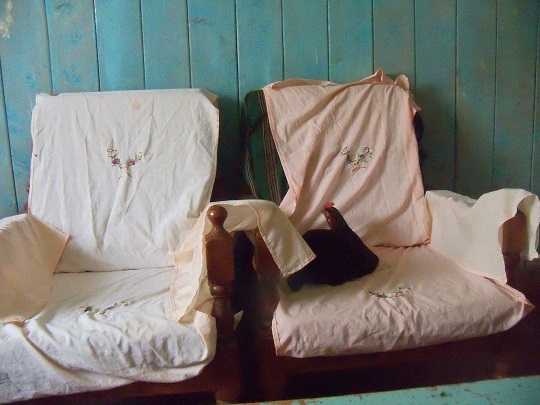 Mieszkają w trzy pokojowym drewnianym domku. Wchodzi się wprost do salonu, na lewo była ich sypialnia, a na prawo pokój piątki ich dzieci, w wieku od roku do 13 lat. Na stole czekała zaparzona w termosie herbata z mlekiem. Kobieta przyniosła nam miskę ugotowanej kukurydzy z fasolą, z ich ogródka. Przyniosła na jednym talerzu i zapytała czy tak może być, czy zjemy wspólnie, czy ma dać drugi talerz. Widząc moje zakłopotanie szybko wyciągnęła drugi talerz. Ona z nami nie jadła, wyszła z domu. Kipet miał na kolanach najmłodszego syna, którego karmił tą fasolą. Oprócz pracy na swojej farmie ma także auto, które służy mu za taxi. Wzięłam do niego kontakt, może wynajmiemy jego auto z nim jako kierowcą.W salonie stał drewniany niewysoki kredens, ława, dwie kanapy i dwa fotele. Na jednym z nich siedziała kura… u nas by siedział kot.