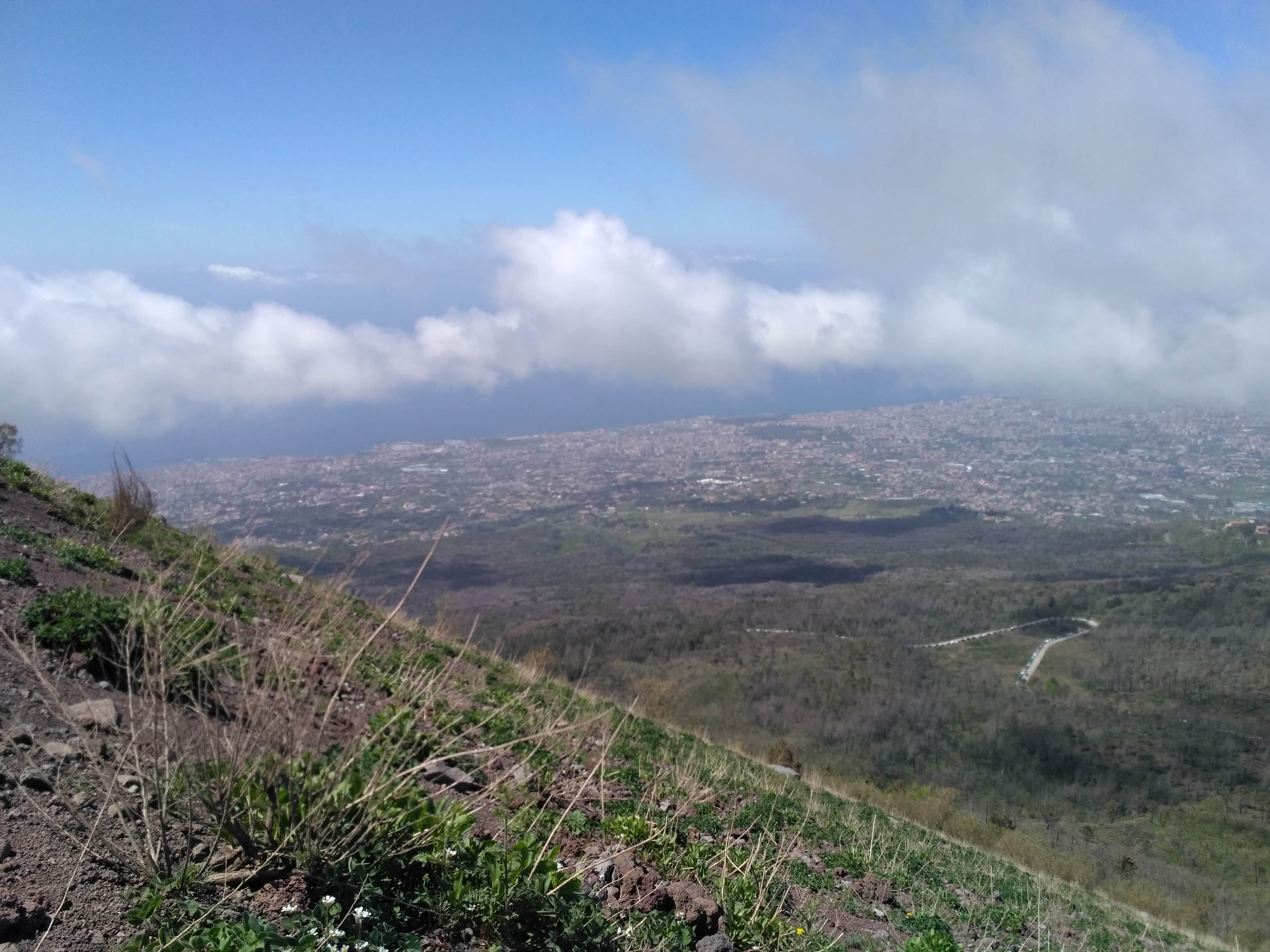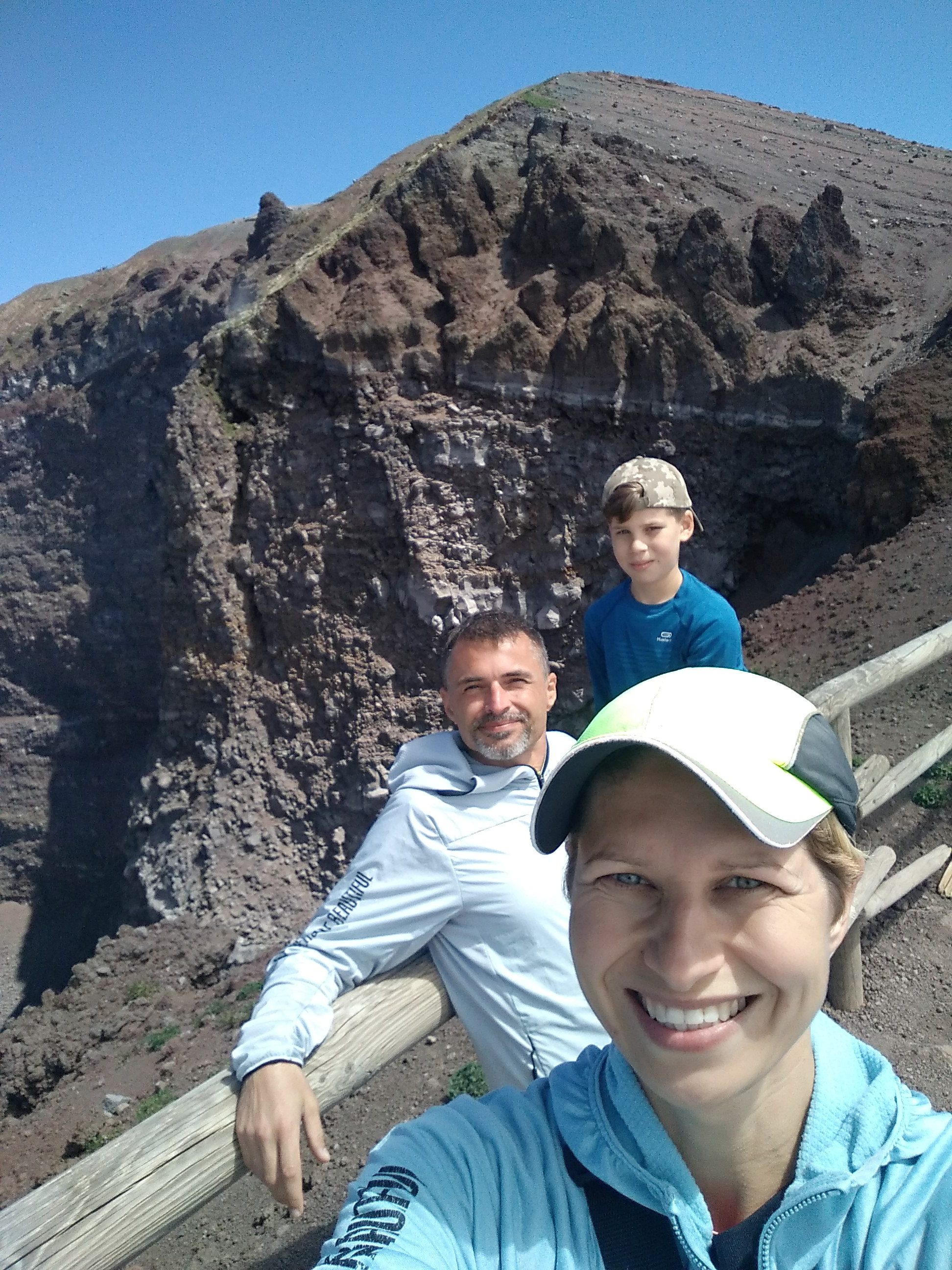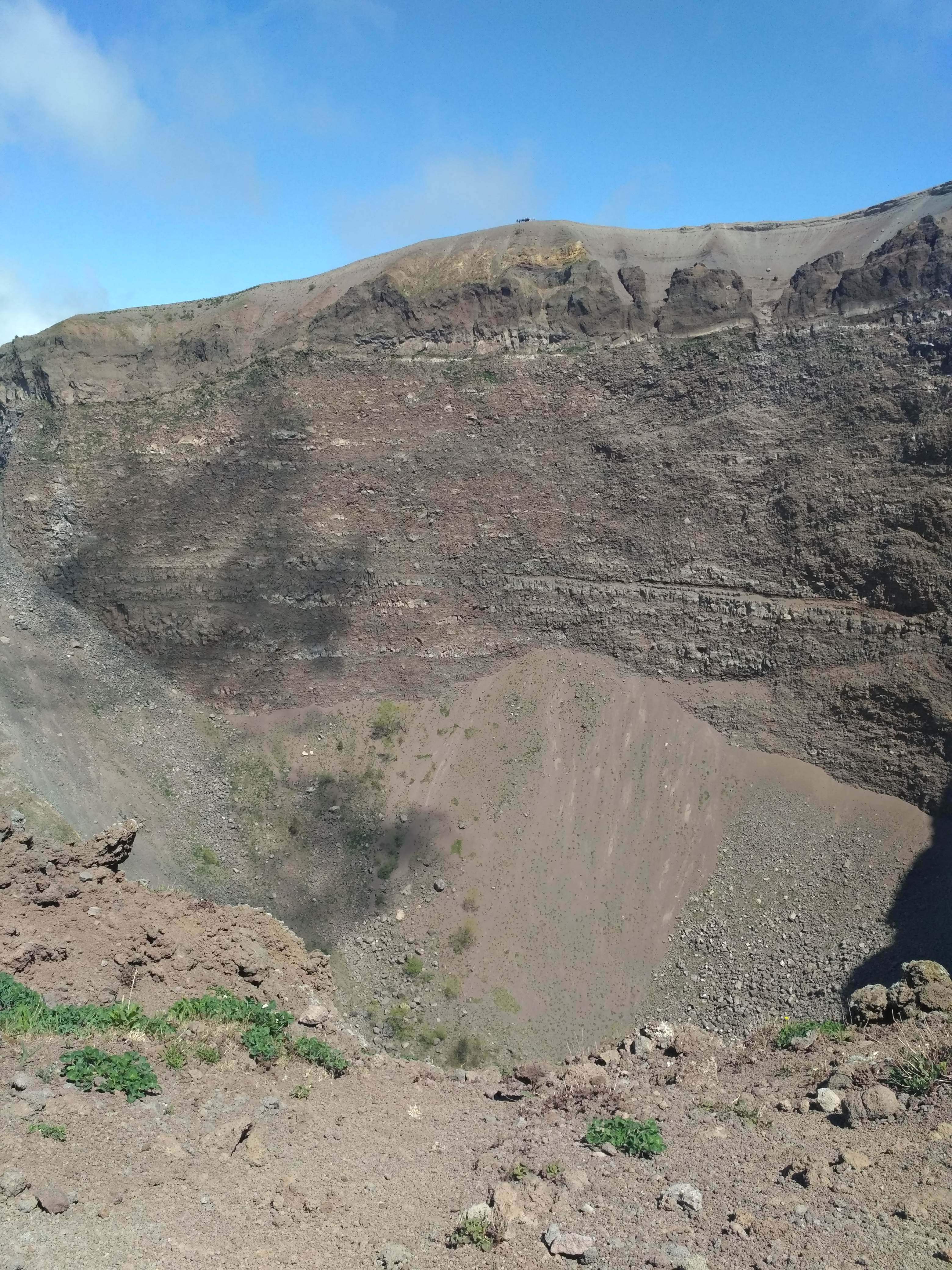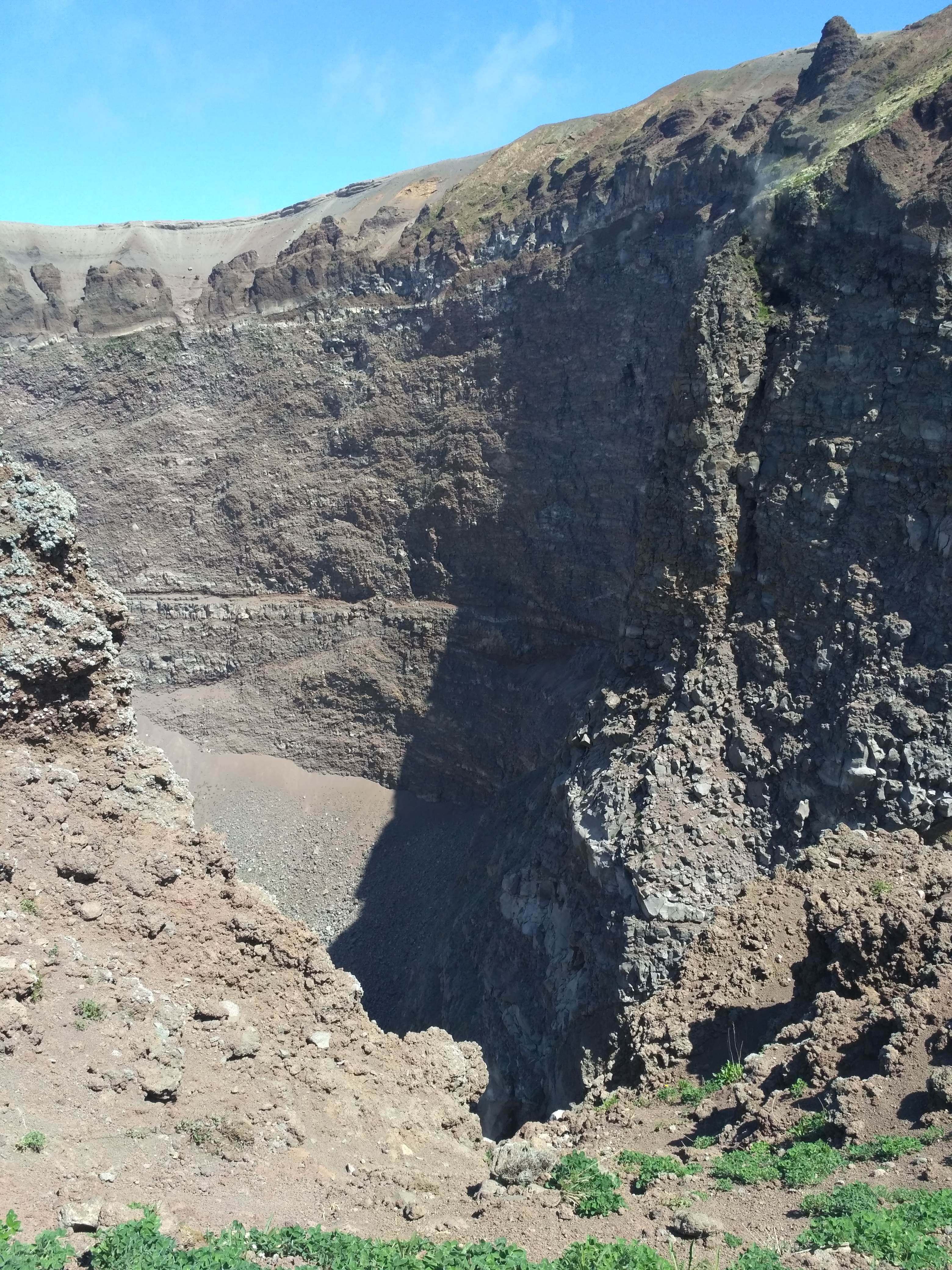 Krater ma średnicę 500 m i jest głęboki na 230 m. Sam Wezuwiusz ma wysokość niemal 1300 m n.p.m. Krater można obejść w połowie i z różnych perspektyw zajrzeć do niego. Niestety naszły chmury, które ograniczyły widok na zatokę neapolitańską. Z wewnętrznych ścian krateru wydobywały się siarkowe wywiewy. Wulkan jest cały czas aktywny i bacznie badany na okoliczność kolejnego wybuchu. Ostatni miał miejsce w czasie II wojny światowej, w 1944 r. Na szczęście nie był tak potężny jak ten z 79 roku naszej ery, który na wiele stuleci przykrył popiołem Pompeje i Herkulanum.