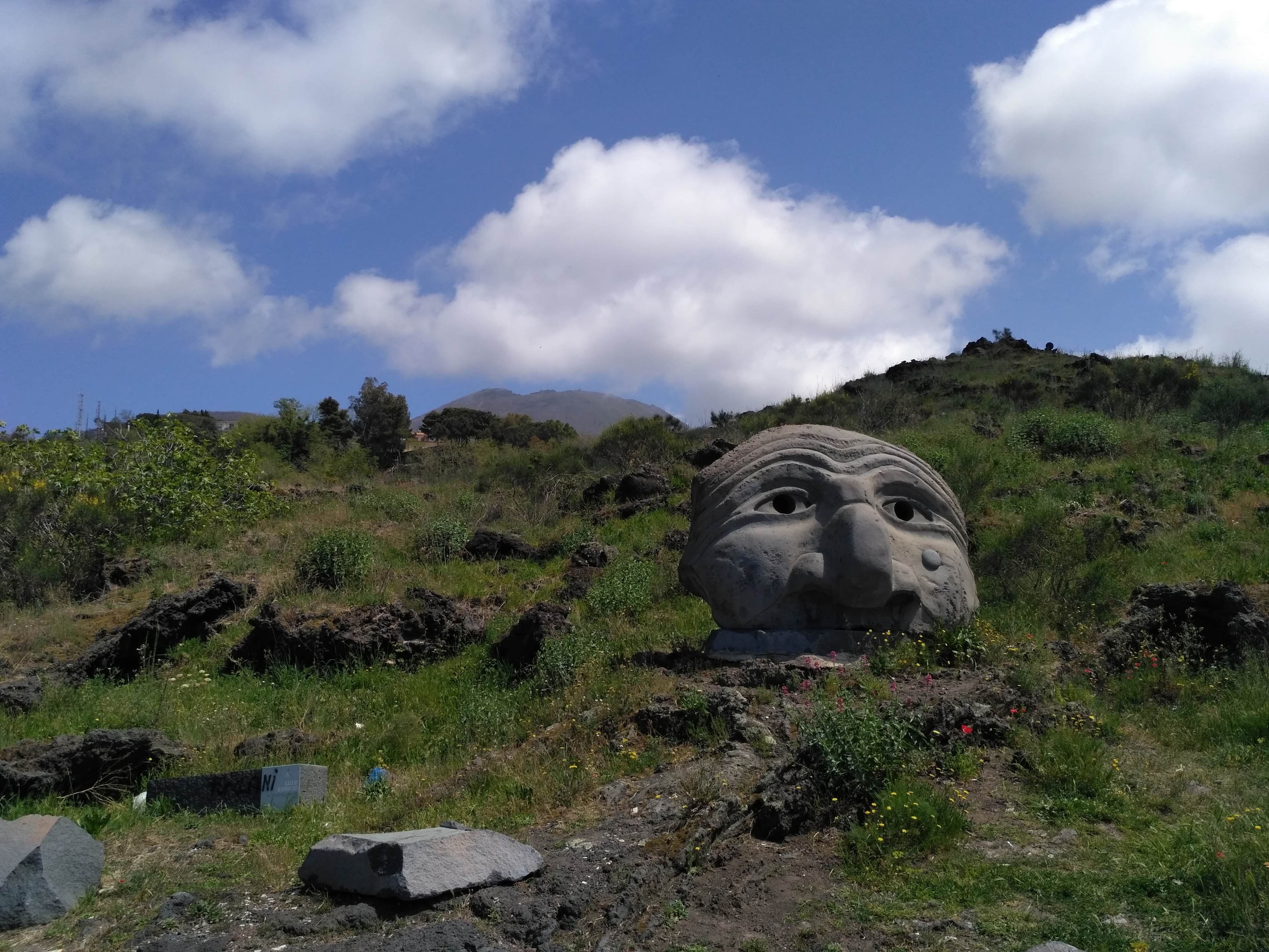 Później spakowaliśmy plecaki do auta i ruszyliśmy w drogę w kierunku Wezuwiusza. Ulice są tu fatalne, dziurawe, wąskie, a dojazd do atrakcji średnio oznakowany, do tego albo moja komórka traci zasięg i GPS nie działa, albo nawigacja w aucie kieruje nas jakoś naokoło. Zgubiliśmy się i dojechaliśmy na wulkan od innej strony. Zawróciliśmy i po kolejnych 30 minutach byliśmy na właściwym parkingu. Stamtąd za dwa euro od osoby podjechaliśmy busem jeszcze kilkaset metrów do bramy do parku narodowego Wezuwiusza. Z tego miejsca czekał nas krótki spacer (800 metrów z przewyższeniem około 250m) serpentyną na szczyt krateru. Po kwadransie mogliśmy już zajrzeć na jego dno.