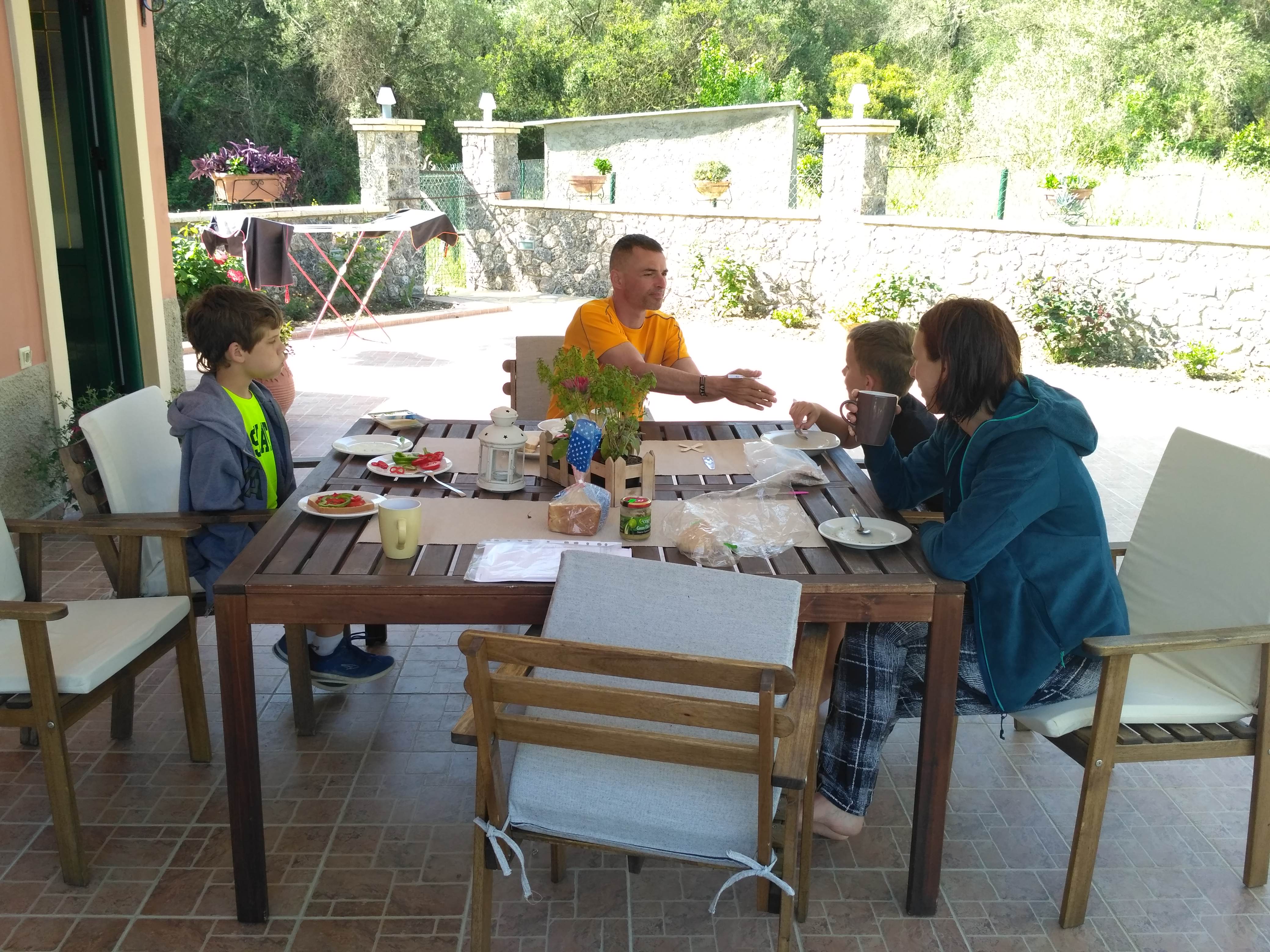 Rano poszłam z Jankiem do lokalnego marketu po świeżą bagietkę. Tu wszystkie sklepy mają w nazwie market. Można w nich kupić podstawowe artykuły spożywcze, coś z warzyw i owoców, choć tu akurat asortyment nas rozczarowuje, może dlatego, że nie ma jeszcze sezonu i tylu turystów. Są też lokalne wyroby i pamiątki. No, ale nie zawsze jest chleb i masło. Pani nas przepraszała mówiąc, że te towary później jej dowożą. Mhm, było przed 10. Ale często spotykamy tu sklepy czy knajpy z karteczkami „czynne od 17” lub 18. Kupiliśmy więc chleb tostowy, pastę z oliwek, pomidory i papryki. Cytrusów mamy jeszcze zapas z poprzednich dni. Zjedliśmy śniadanie na naszym tarasie i znów pakowanie bagaży do auta. Coraz sprawniej nam to idzie.
