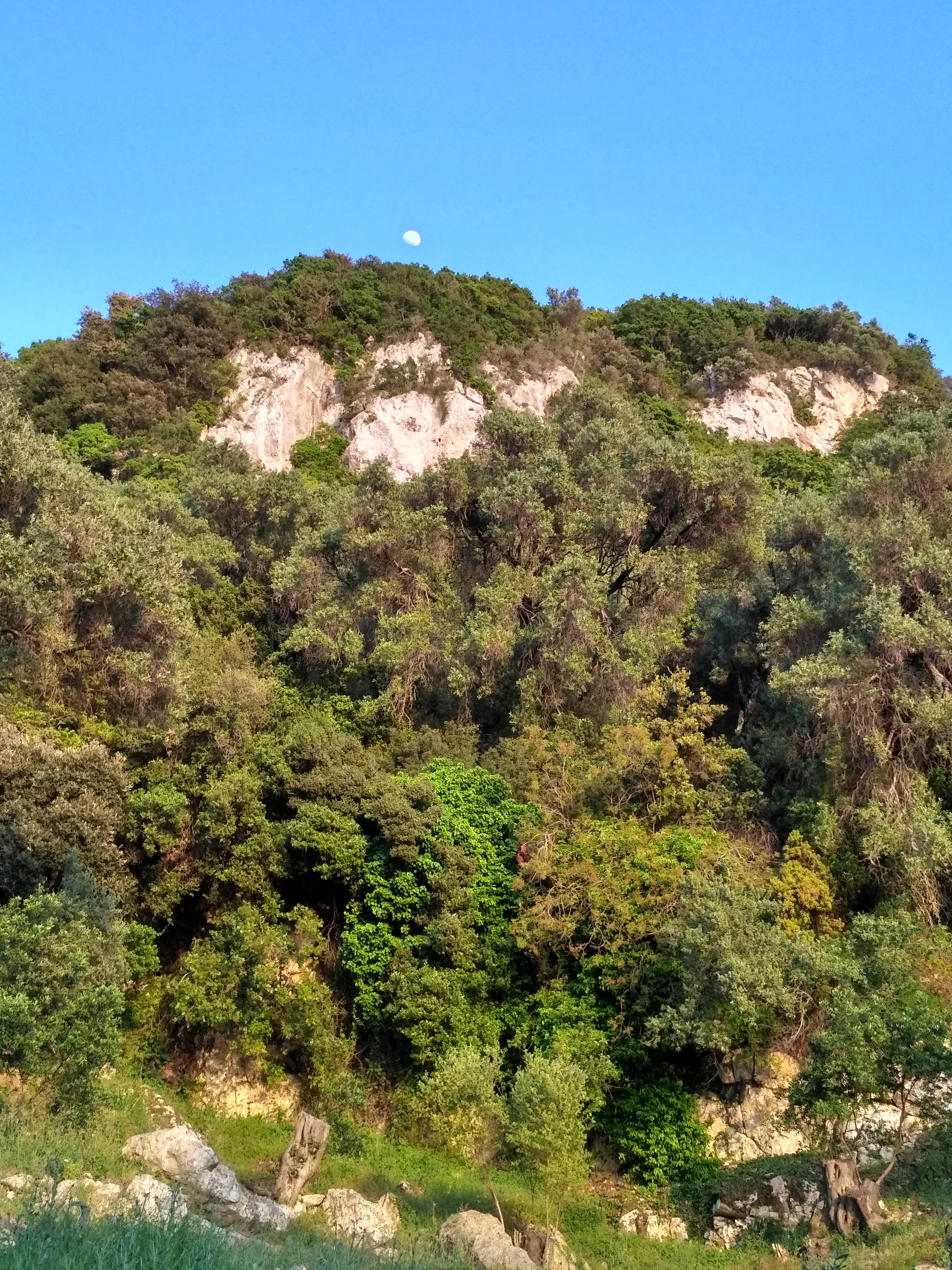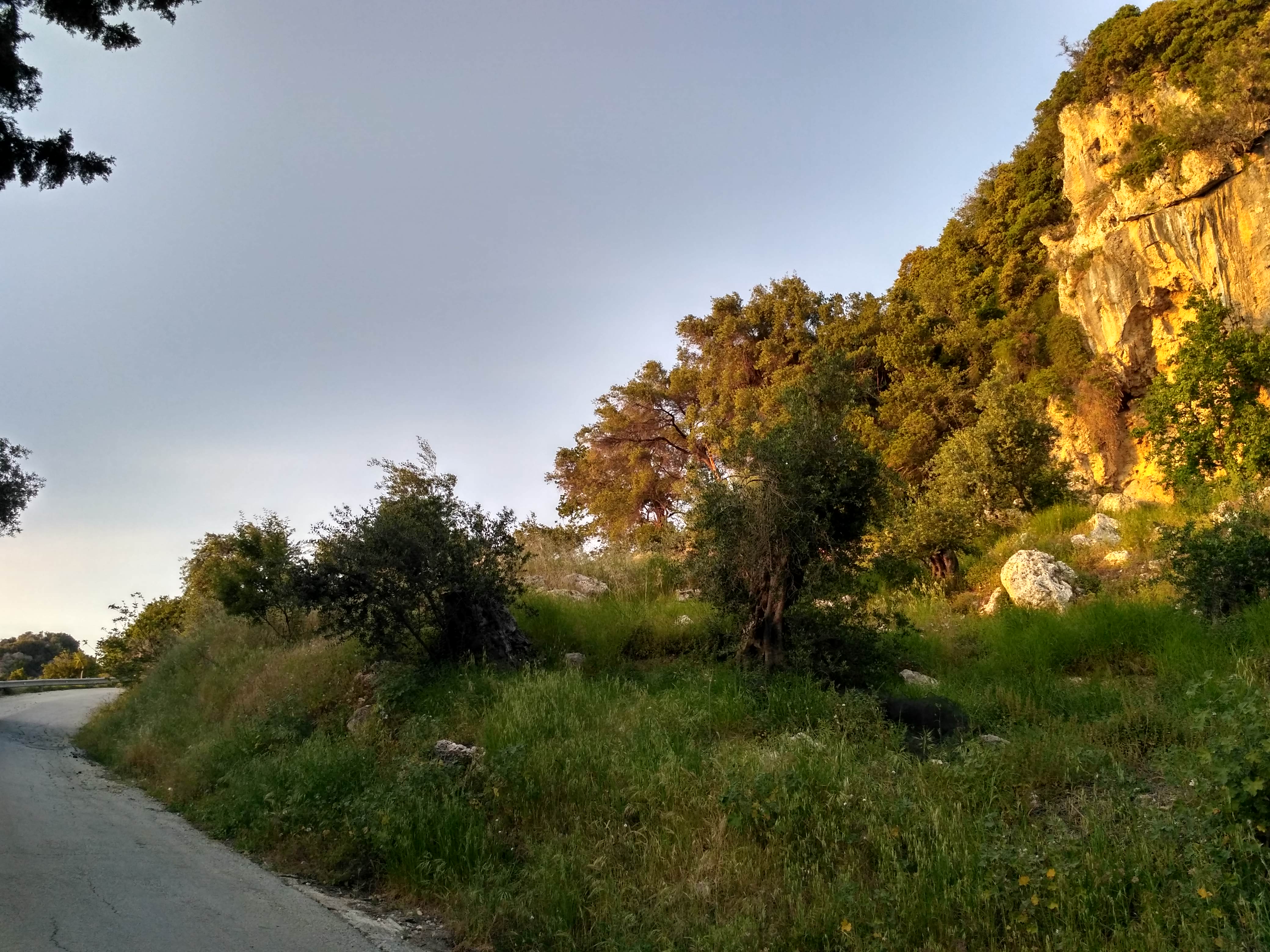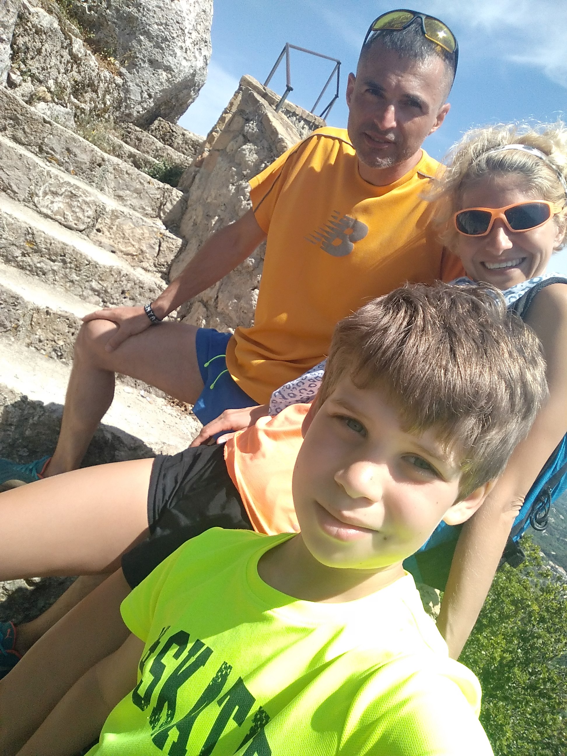 Na naszym tarasie przyjemnie świeciło słońce. Do zachodu było jeszcze ok 1,5h. Mnie już dziś zaczęło nosić. To już kolejny dzień bez biegania i zaczynam się robić nerwowa z „nic nierobienia”. Nie trafiłam do tej pory na żadne ścieżki, wszędzie asfaltowe drogi, wąskie, kręte, strome i bez poboczy. Nie biegam treningowo nigdy po asfalcie, szkoda mi nóg. Ale zaczynam się czuć jak nałogowiec, który odstawił używkę. Dlatego zostawiłyśmy wieczorem dzieciaki z yacoolem, a same z Martyną poszłyśmy się przejść. Droga pięła się stromo pod górę, na końcu był szlaban i jakiś Grek nas zawrócił mówiąc, że wstęp mają tylko goście hotelu. Zeszłyśmy więc do punktu wyjścia i wybrałyśmy inną opcję. Udało nam się obejść górę, która jest charakterystycznym punktem naszego miasteczka i którą dobrze widać z plaży. Z bliska wygląda jakby co jakiś czas odpadały od niej kawałki tworzącej ją skały. W pewnym miejscu droga była zniszczona prawdopodobnie przez jedno z osuwisk. W czasie naszego marszu słońce zaszło i zaczęło robić się zimno. Przyspieszyłyśmy więc kroku. Szłam z lekką obawą jak yacool daje sobie radę z chłopakami. Nie było nas w końcu ponad 2h. Jak doszłyśmy do domu on spał, a chłopaki bawiły się w chowanego skacząc po pobliskich dachach… Ja po żwawym górskim marszu od razu poczułam się lepiej.