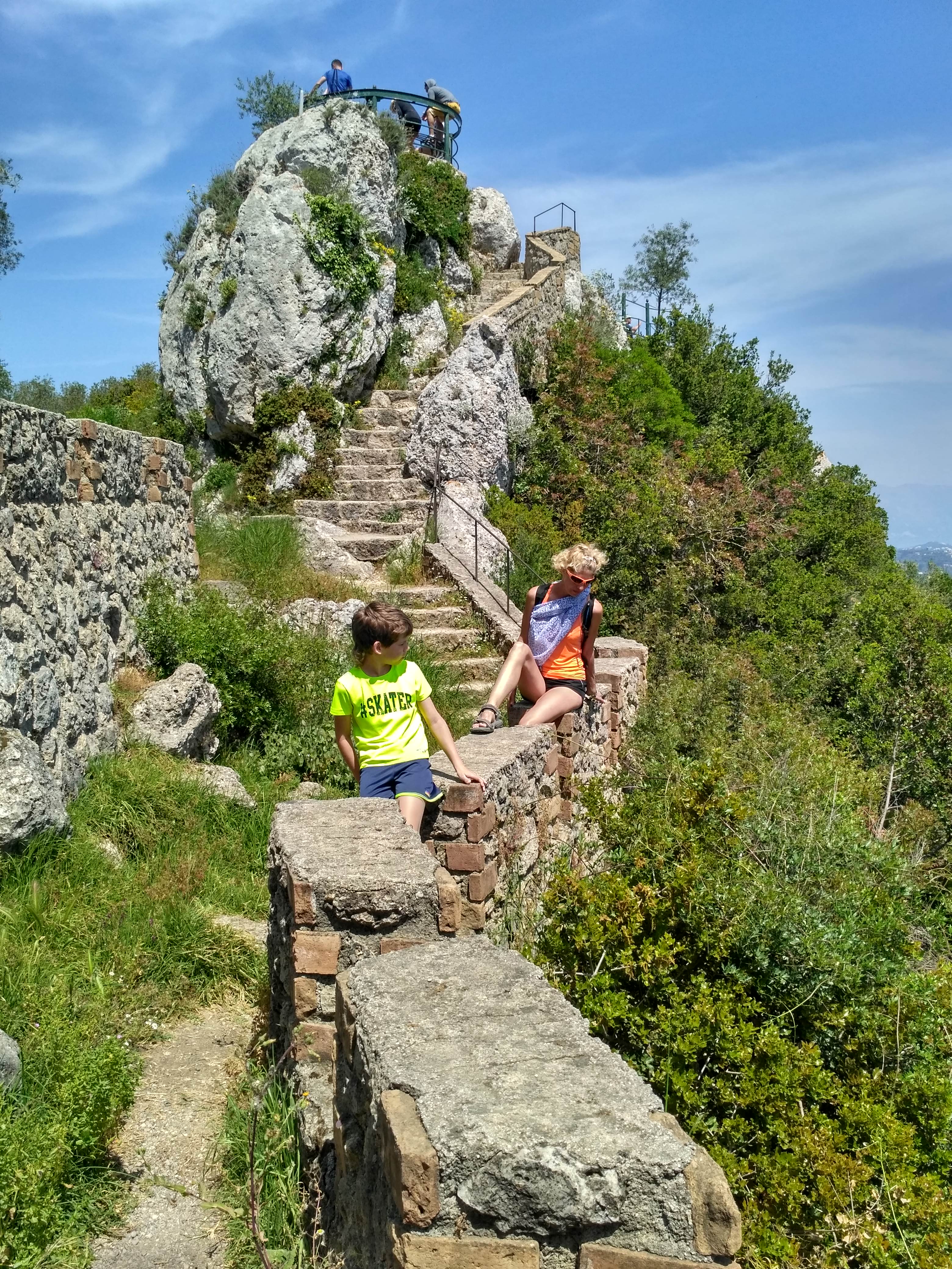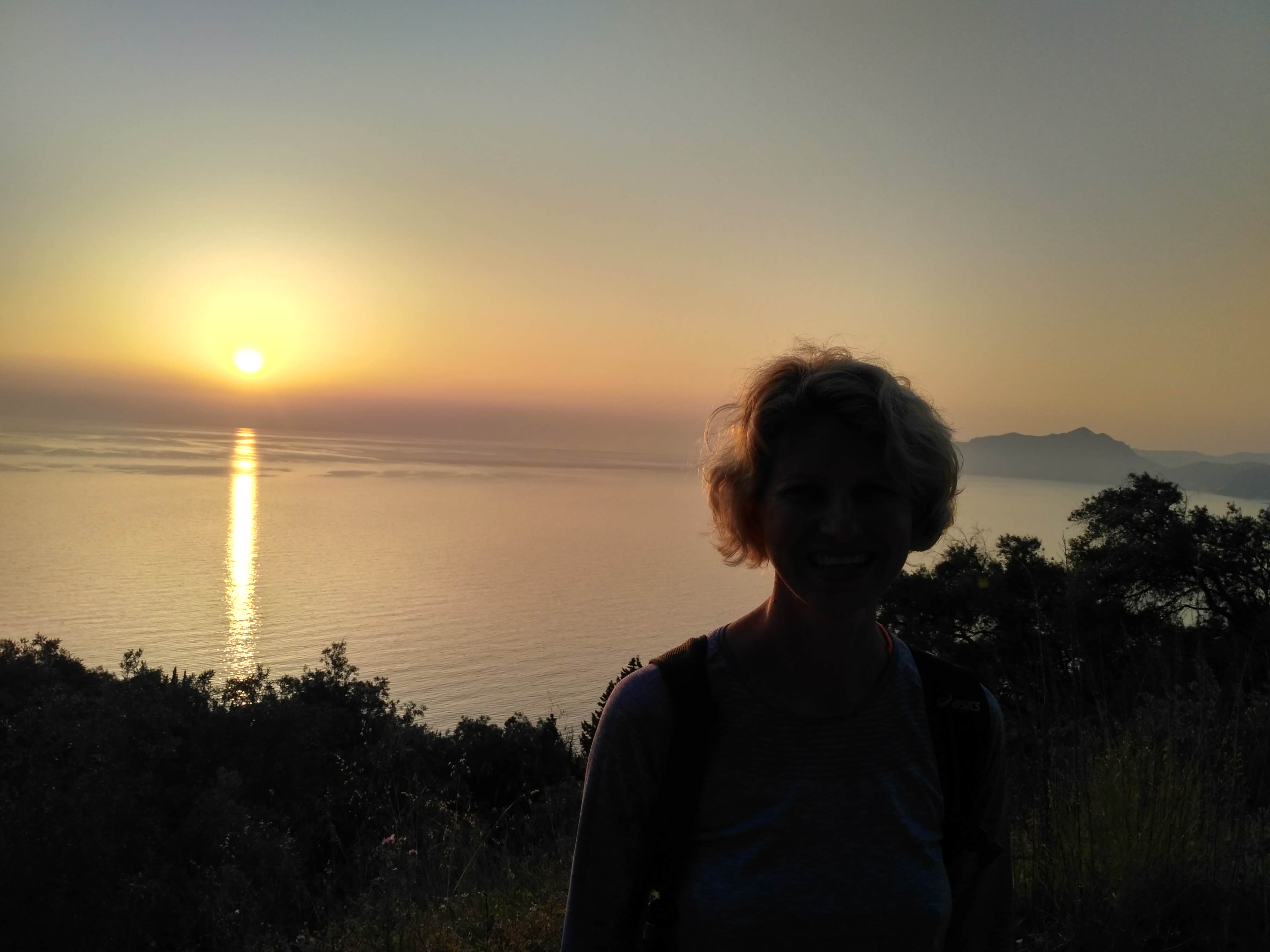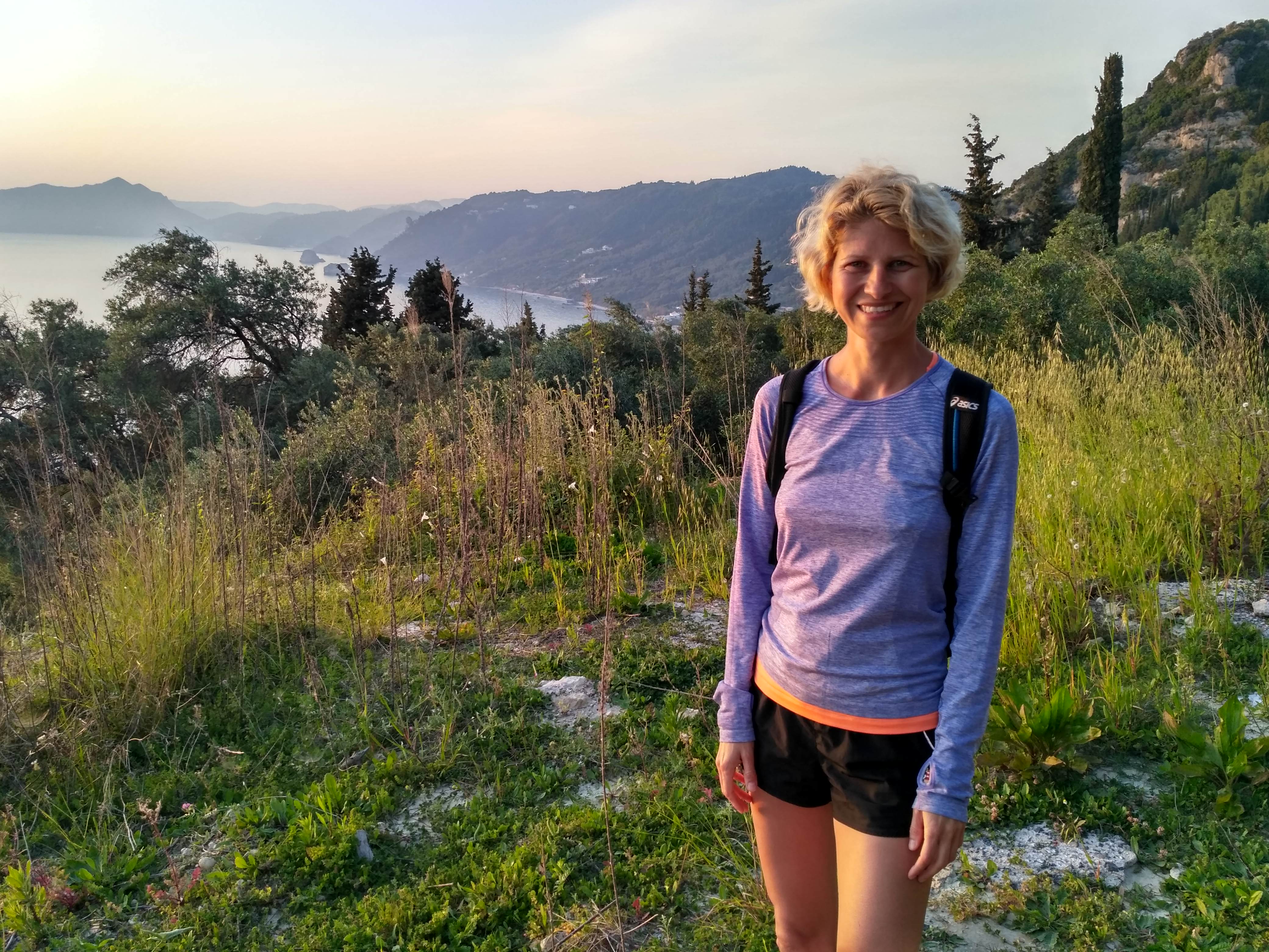 Na naszym tarasie przyjemnie świeciło słońce. Do zachodu było jeszcze ok 1,5h. Mnie już dziś zaczęło nosić. To już kolejny dzień bez biegania i zaczynam się robić nerwowa z „nic nierobienia”. Nie trafiłam do tej pory na żadne ścieżki, wszędzie asfaltowe drogi, wąskie, kręte, strome i bez poboczy. Nie biegam treningowo nigdy po asfalcie, szkoda mi nóg. Ale zaczynam się czuć jak nałogowiec, który odstawił używkę. Dlatego zostawiłyśmy wieczorem dzieciaki z yacoolem, a same z Martyną poszłyśmy się przejść. Droga pięła się stromo pod górę, na końcu był szlaban i jakiś Grek nas zawrócił mówiąc, że wstęp mają tylko goście hotelu. Zeszłyśmy więc do punktu wyjścia i wybrałyśmy inną opcję. Udało nam się obejść górę, która jest charakterystycznym punktem naszego miasteczka i którą dobrze widać z plaży. Z bliska wygląda jakby co jakiś czas odpadały od niej kawałki tworzącej ją skały. W pewnym miejscu droga była zniszczona prawdopodobnie przez jedno z osuwisk. W czasie naszego marszu słońce zaszło i zaczęło robić się zimno. Przyspieszyłyśmy więc kroku. Szłam z lekką obawą jak yacool daje sobie radę z chłopakami. Nie było nas w końcu ponad 2h. Jak doszłyśmy do domu on spał, a chłopaki bawiły się w chowanego skacząc po pobliskich dachach… Ja po żwawym górskim marszu od razu poczułam się lepiej.