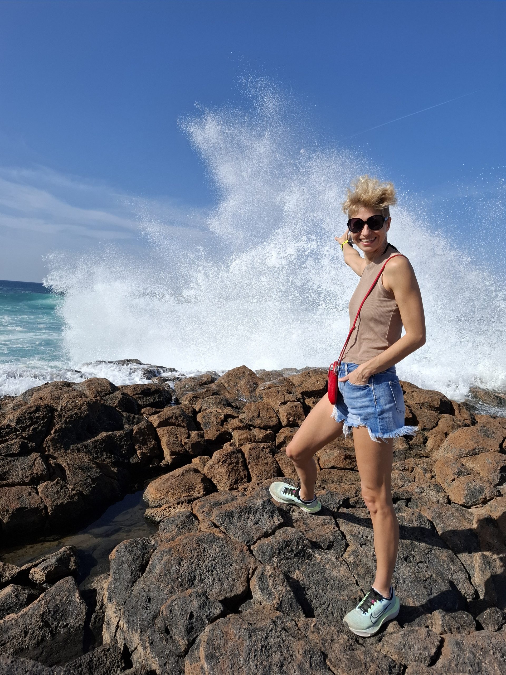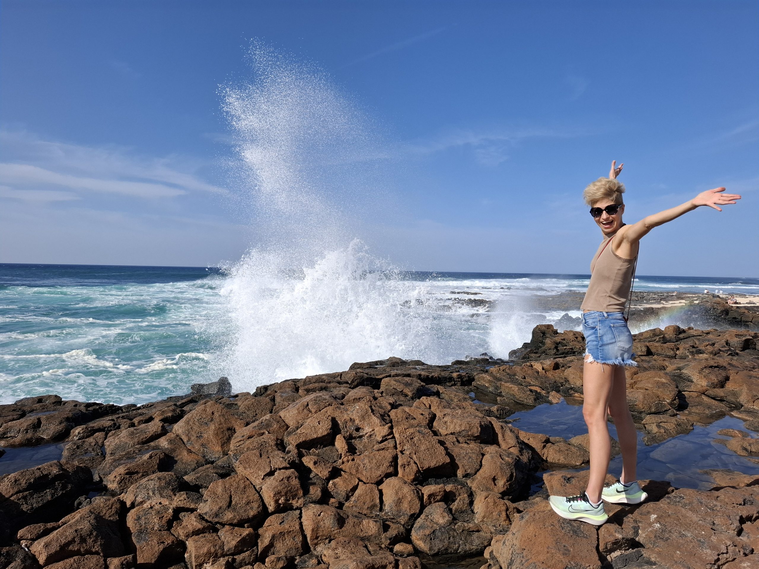 Prosto z wulkanu pojechaliśmy na plażę odpocząć. Chyba nigdzie wcześniej nie widziałam tak wielkich fal! Kilka osób odważnie weszło do wody, kilka osób próbowało swych sił ns surfingu.