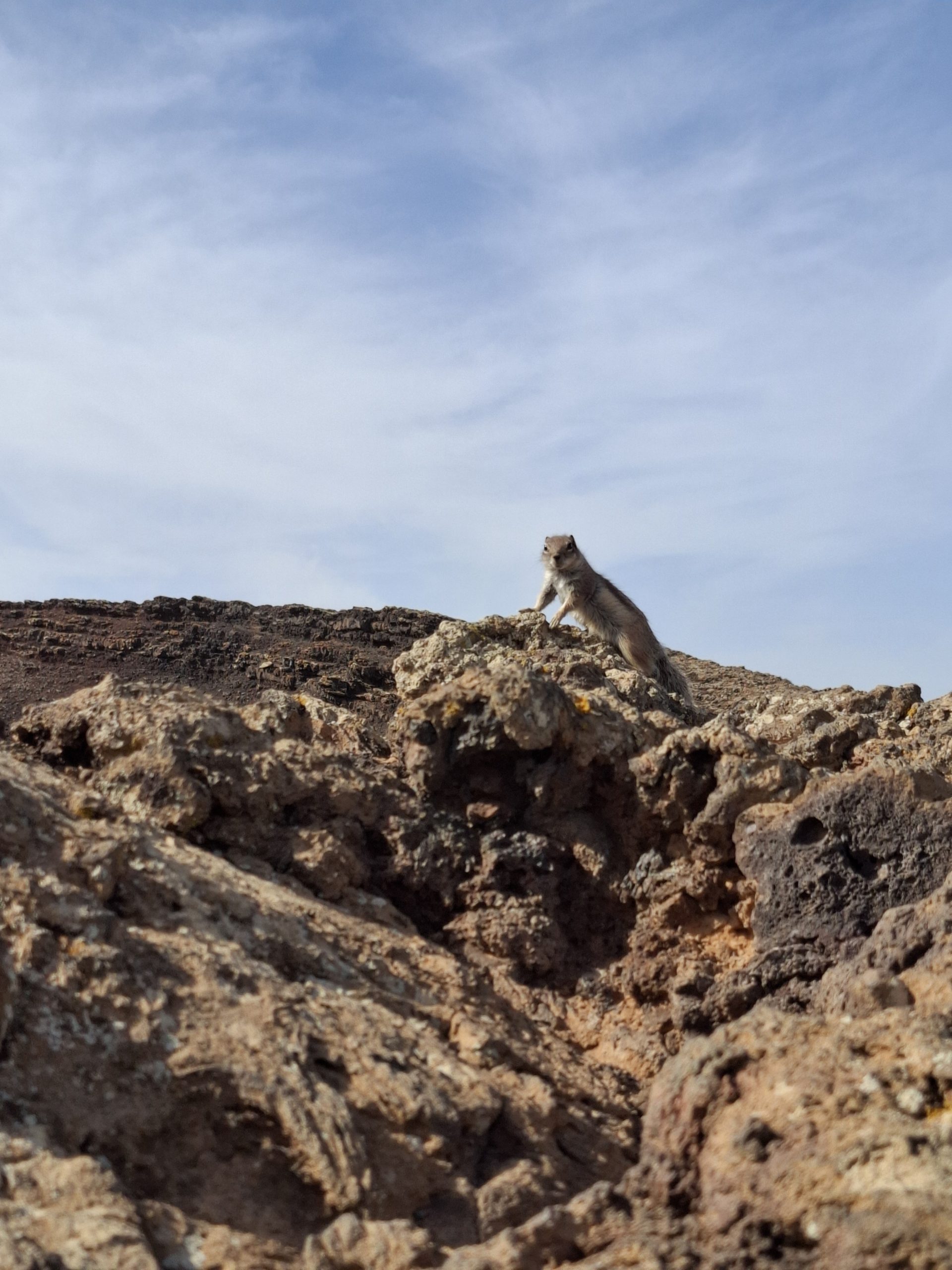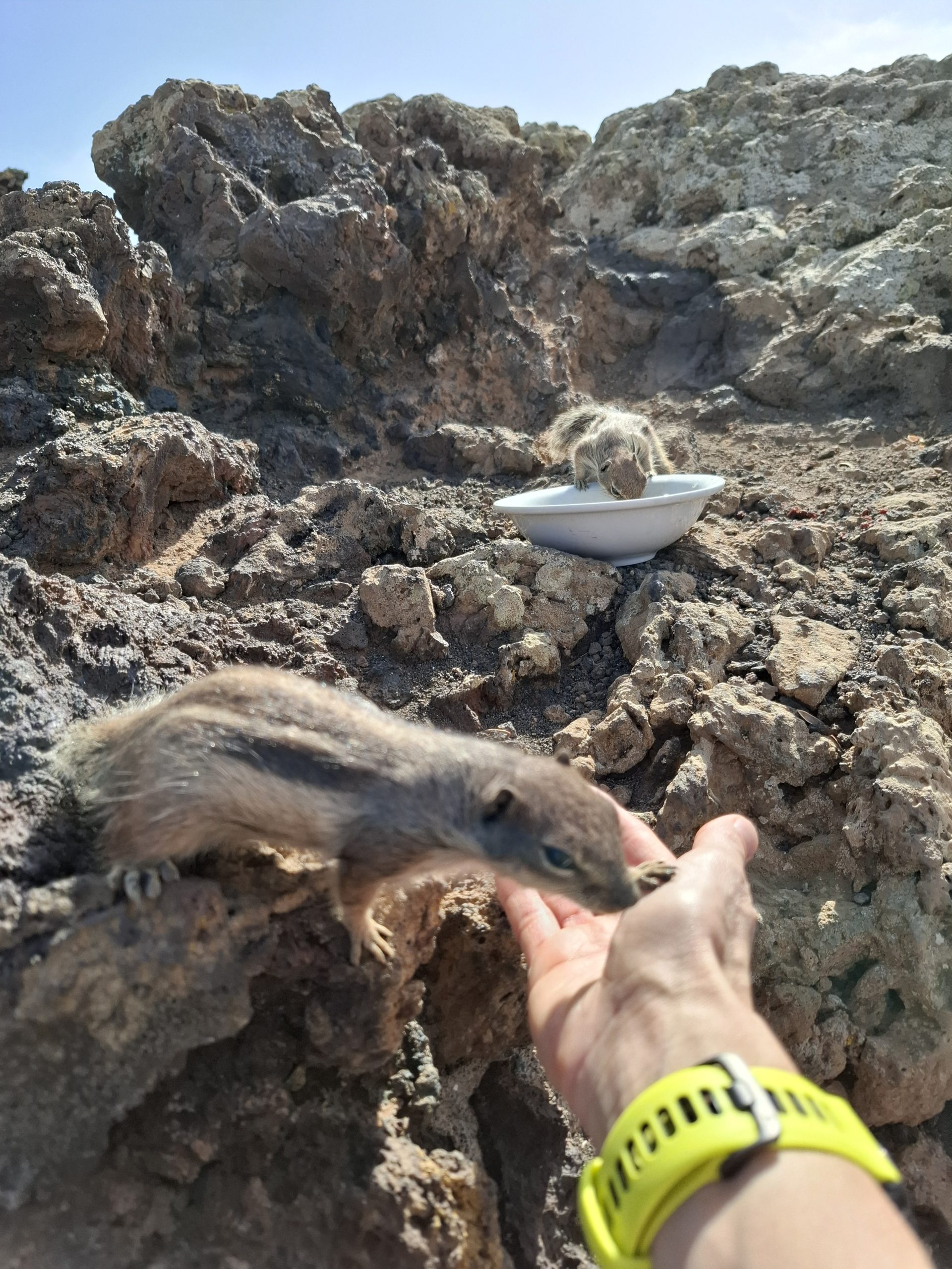 Po drodze na kamiennych murkach biegały pręgowce berberyjskie, wyglądały jak pręgowane wiewiórki. Najwięcej było ich przy samej kalderze, gdzie liczyły na coś od turystów. Fajnie, że ktoś postawił im tam miseczkę z wodą, faktycznie podbiegały do niej się napić.