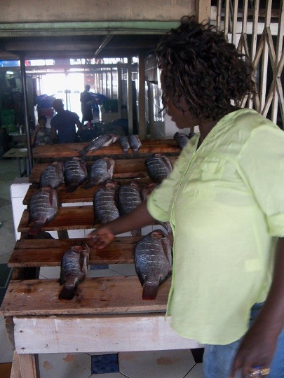 Woda w jeziorze była ciepła jak zupa. Na straganach można było kupić tutejszą rybę, tilapię. Lokalne chłopaki proponowali nam wynajęcie łódki i obiad w jednej z nadbrzeżnych knajp. Kornel stwierdził, że jest drogo i pokaże nam lepsze miejsce. Podjechaliśmy do innej zatoczki. Tu piętrzyły się knajpy, a kelnerki nawoływały przekonując, że to akurat u nich powinniśmy zjeść. Toalety były w osobnej, murowanej przybudówce. Koszt 40 groszy. Bekele przeżył szok. To była pierwsza toaleta w jego 30 letnim życiu, za którą musiał zapłacić. Dla mnie pierwsza restauracja z toaletą w polu. Zamówiliśmy wielką tilapię dla całej naszej piątki, do tego ugali. Ryba była świetnie przyrządzona, cała w sukumie i sosie. Mniam. Tu się je rękami. Przed i po posiłku kelnerka przychodzi z miską, dzbankiem z wodą i mydłem, by każdy mógł umyć ręce.