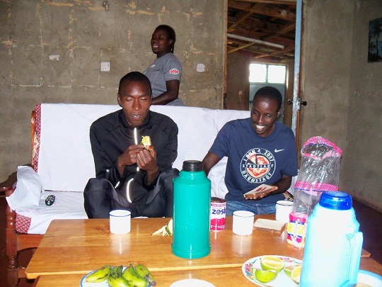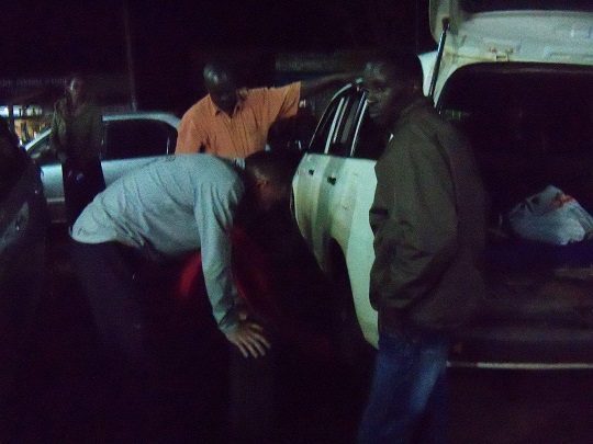 W Kapsabet zrobiliśmy sobie przerwę na herbatę i mandazi w „hotelowej” restauracji. Była 20:30, szanse na złapanie o tej porze matatu do Eldoret, a potem do Iten marne. U chłopaków na kolejną noc nie chcieliśmy zostawać. Chcieliśmy sobie rano pobiegać po naszych itenowych szlakach. Dogadaliśmy się z Kornelem na stawkę za zawiezienie nas do domu, kolejne 80 km. Kosztowało nas to prawie tyle samo co wyprawa nad jezioro, ale z drugiej strony była noc, a on potem jeszcze musiał wrócić do siebie. Nie miałam siły na targowanie się, poza tym polubiliśmy go bardzo i byliśmy wdzięczni za dotychczasowe usługi. Na stacji benzynowej okazało się, że złapaliśmy panę. Yacool wymienił koło. Wachira i Bekele nie chcieli się z nami rozstawać i też pojechali do Iten. Poza tym jeszcze nigdy nie byli w Home of Champions. Po drodze Jacek zmienił za kółkiem mocno już zmęczonego Kornela. Dobrze sobie radził za kierownicą automatu, do tego jadąc po drugiej stronie jezdni. Na szczęście tu ruch był już mały, ludzie też przestali się szwendać, no i nie padało. Podziwiałam przez okno rozgwieżdżone niebo. Wachira gadał całą drogę, nie znam drugiego takiego gaduły! Do Keellu dotarliśmy po 23. Zaprosiliśmy jeszcze chłopaków na herbatę, wymieniliśmy się kontaktami telefonicznymi, pożegnaliśmy i poszliśmy spać. O drugiej w nocy przyszedł SMS od Bekele, że dojechali.