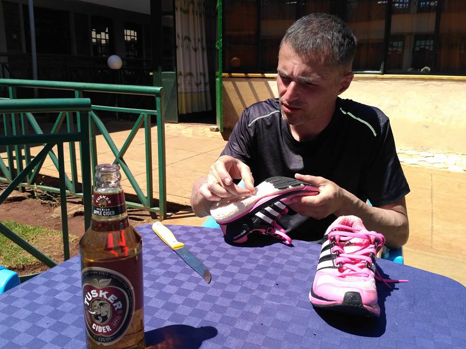 Po treningu zeszliśmy z chłopakami na patio na herbatę. My zamówiliśmy sobie po piwie. Poza tradycyjnym Tuskerem, przetestowaliśmy też Tuskera cydrowego, bardzo smaczny. Yacool dostał dzień wcześniej zlecenie na przeróbkę butów od Mary. Szybko się z nimi uporał.
