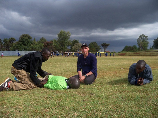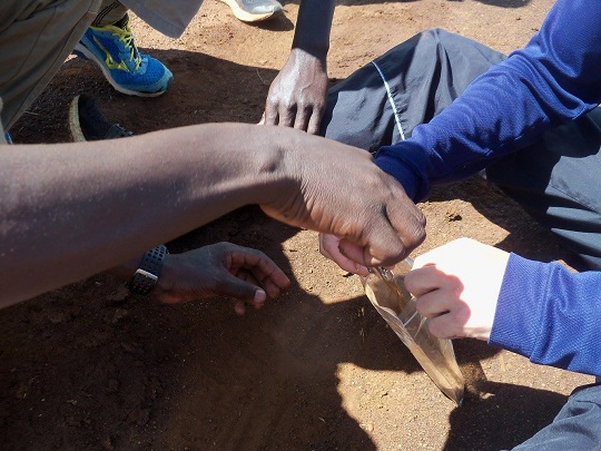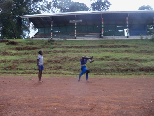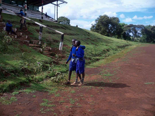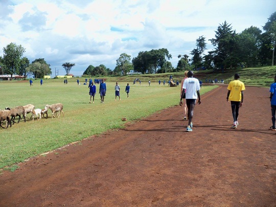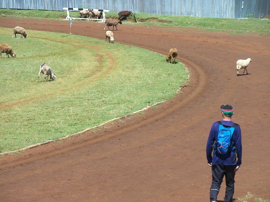 Przyszliśmy na stadion. Zastaliśmy na nim jedynie stado łapczywie żrących trawę owiec. Kilka z nich próbowało swoich sił biegając wokół po pierwszym torze. Uśmiechnęliśmy się do siebie, że pewnie chłopakom się nie chciało przyjść. Ale po chwili się zjawili. Reuben, Meshack i nowy chłopak Mathew. Yacool naskrobał do woreczka czerwonej ziemi z pierwszego toru, na którym trenują mistrzowie. Ziemię chce wystawić w Polsce na aukcji, zaczynamy zbierać fundusze na kolejny przyjazd do Iten. Dziś ja zajęłam się mniej radzącymi sobie w ćwiczeniach, a yacool wziął w obroty Ruebena, który najlepiej łapie koordynacyjne układy.