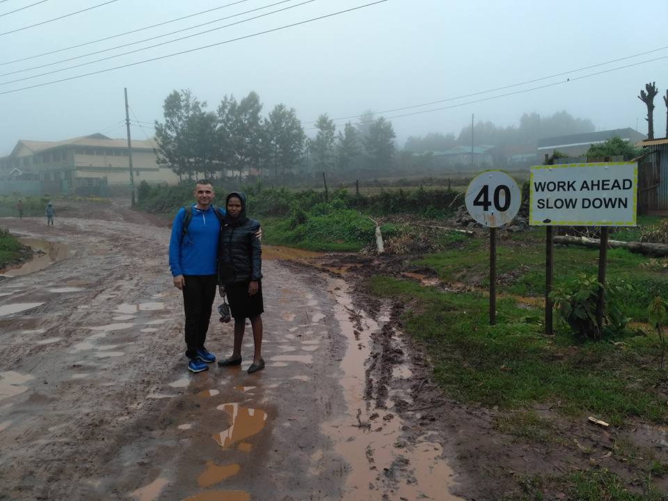 Ale co mnie jeszcze zdziwiło poza wspomnianym wzorowym kierowcą? Luzem chodzące ulicą świnie, wyższa cena i jakość usług za matatu z Eldoret do Iten (do tej pory było to 100 ksh/os (1 usd) i jazda z dwukrotnie większą ilością osób niż producent auta przewidział, plus zatrzymywanie matatu i zgarnianie/wysadzanie pasażerów co 200 metrów, co zawsze strasznie przedłużało podróż. Dziś jazda w pełnym komforcie, bez postojów, szybko, sprawnie, bez ryczącej muzyki kalenjin i kozła za plecami. Poza tym zupełnie rozmokła i śliska, że iść ledwo się dało droga do naszego hotelu już w Iten. Jak tu biegać? Wszędzie mega błoto. Wkrótce powstanie tu podobno droga asfaltowa. Jest już przygotowana wstępnie tablica, którą z tej okazji odsłoni prezydent i znak spowalniający prędkość!