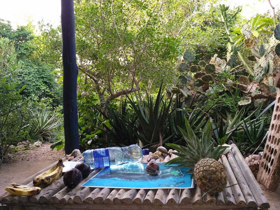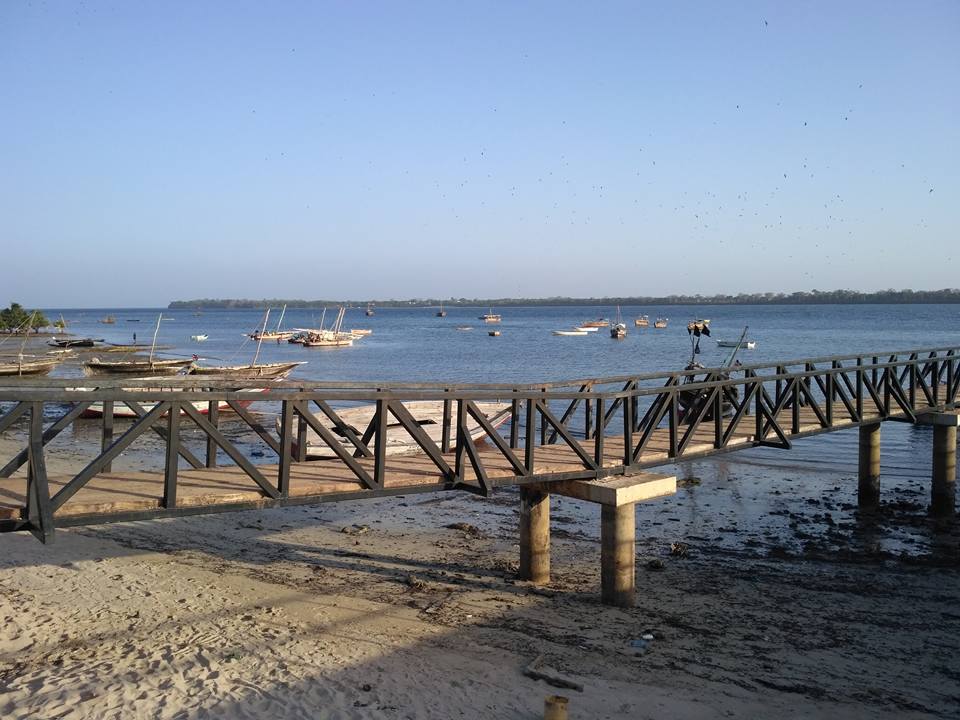 Shimoni to mała wioska na końcu kenijskiego świata. Po wyjściu z busa podszedł do nas lokalny, uśmiechnięty mężczyzna. Zapytał czy jestem Agata. Nazywał się Feisal i był naszym gospodarzem. Kupiliśmy szybko trochę owoców na straganie i poszliśmy za nim na przystań. Feisal zabrał nas swoją łodzią na przeciwległą wyspę Wasini. Ponieważ był niski poziom wody zacumował około 100 metrów od brzegu. Wzięliśmy plecaki i zeskoczyliśmy do wody. Brodząc po kolana w ciepłej wodzie poszliśmy na brzeg. Czekała tam już na nas jego europejska żona, Amina. Zaprowadziła nas do naszego domku. Miejsce to nazywa się Blue Monkey Cottage. Nazwa pochodzi od małp, które są tu częstymi gośćmi. Domek schowany jest w buszu, ma duży taras, łoże z moskitierą z widokiem na górujący nad resztą roślinności baobab. Na wyspie nie ma słodkiej wody. Mieszkańcy gromadzą ją w zbiornikach. Wodę należy oszczędzać. Wnętrze domku ma lokalne akcenty, muszle wkomponowane w ściany łazienki, konary mangrowca niczym obrazy zdobią ściany.