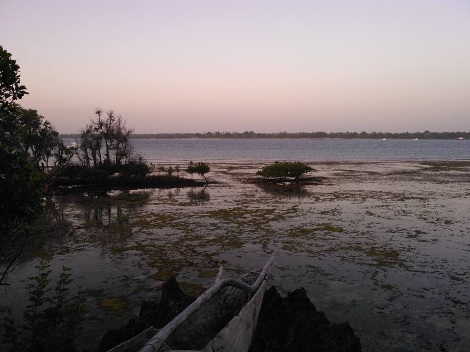 Kolację zjedliśmy już po zmroku. Tu robi się ciemno ok 18:30. Amina zaserwowała nam lokalne wegetariańskie specjały, typowe dla kuchni suahili. Był ryż gotowany na mleku kokosowym, chappatti i przepysznie doprawione duszone warzywa. Jeśli dobrze zrozumiałam były tam też wodorosty z mangrowego lasu.