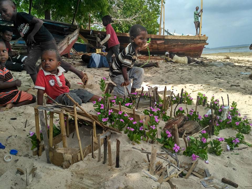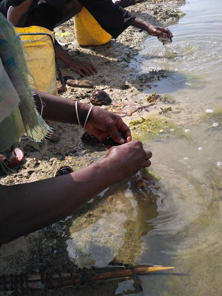 Poszliśmy w kierunku morza. Przed nami z połowów wracały lokalne kobiety. Niosły ze sobą patyki, którymi łowiły ryby. Zatrzymały się koło nas i zaczęły je czyścić. Miały ośmiorniczkę i morskie ogórki, które przekłuwały patykiem wyciskając z nich wnętrzności. Zagadywały nas w suahili, nic nie rozumieliśmy. Znały jedno słowo po angielsku, money, w suahili – pesa. Chciały pieniędzy za zrobione im zdjęcie. Yacool zachwycał się ich gibkością bioder, gdy tak w przysiadzie patroszyły morskie zdobycze. Na horyzoncie było widać jakąś formację porośniętą roślinnością. Wyglądała jak stary wrak statku. Musimy o nią zapytać Feisala.