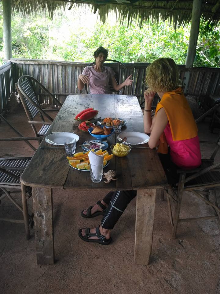 Poprosiliśmy Aminę, by przygotowała nam herbatę na 7 rano. Ze śniadań tu nie korzystamy, są zbyt europejskie, jajka, dżem, chleb. Zamiast tego jemy owoce. Skórki mamy rzucać „za siebie”, korzystają na tym małpy i kozy.