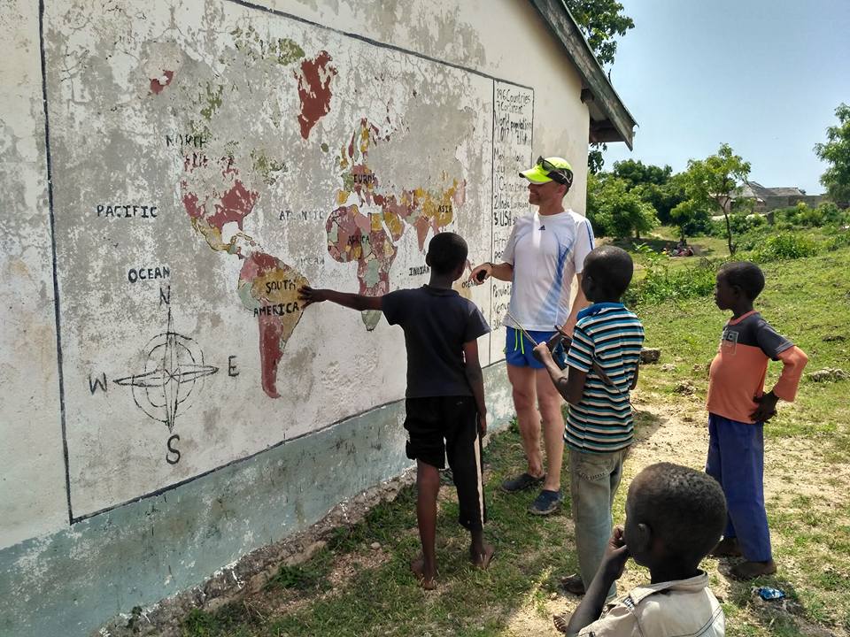 Słońce zaczynało grzać coraz mocniej. Zeszliśmy z plaży i poszliśmy ścieżką w kierunku drugiej na wyspie większej wioski. Przed wejściem do niej grupka kobiet robiła pranie. Za kolejnego dolara pozwoliły się sfotografować. Założyły nawet na głowę kolorowe chusty, by ładniej wyglądać. W wiosce panował spokój i cisza. Na ganku jednego z domów kobieta wyplatała kapelusze. Kupiłam jeden od niej, by schować głowę przed słońcem. Dopadła nas grupka dzieciaków, mają teraz wakacje i większość z nich bawi się nad wodą. Minęliśmy budynek szkoły. Na jednej ze ścian była narysowana mapa świata. Yacool pokazał na niej chłopcom skąd przyjechaliśmy.
