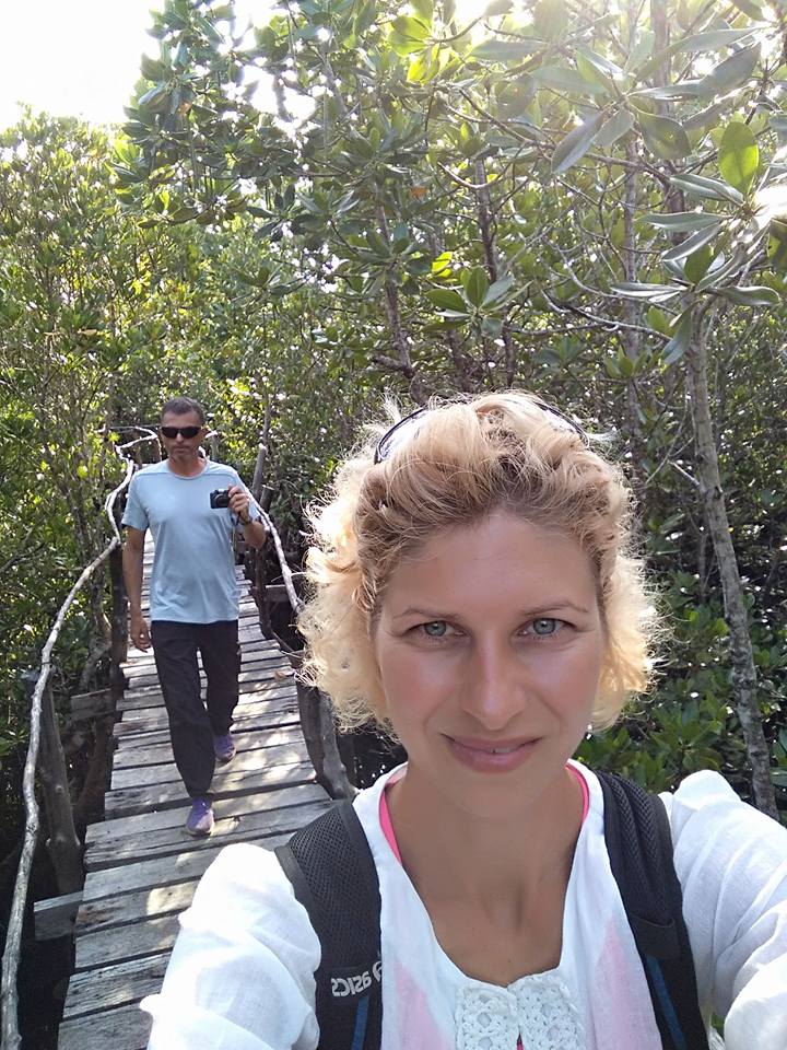 Po południu poszliśmy na spacer do ogrodu koralowego. Dzięki inicjatywie miejscowych kobiet wokół koralowych skał wybudowano kładkę spacerową. Można nią iść na spacer wśród drzew mangrowych. Niestety w części była uszkodzona. Dwóch mężczyzn przymierzało się do jej naprawy.