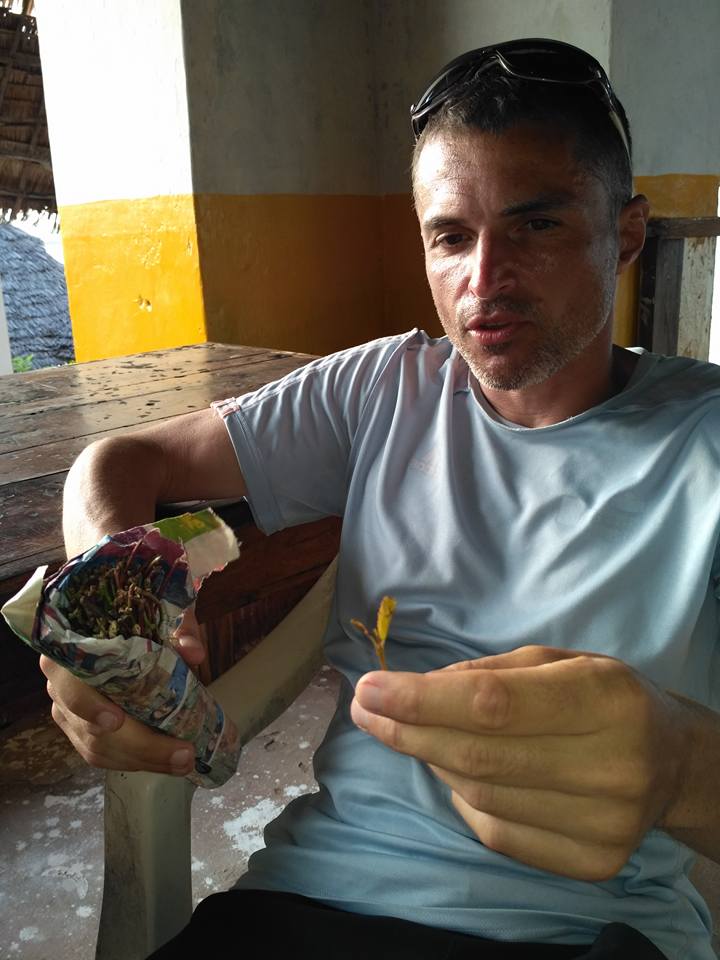 Wracając ze spaceru zaszliśmy jeszcze do wioski. Yacool umówił się ze spotykanym rano Kasim, że ten da mu przetestować mirę. Miejscowi rzują te patyki jako rodzaj lekkiego „znieczulacza”. Są ogólnodostępne i tańsze niż alkohol. Ponoć legalne. Yacool porzuł ich trochę, ale nic nie poczuł. Ja w tym czasie chciałam znaleźć sklepik i kupić owoce na jutrzejsze śniadanie. Jakiś lokals, który miał całą buzię wypełnioną tymi patykami miał mi pokazać drogę. Mówiłam wyraźnie, że chcę iść do „shop”. Zaprowadził mnie do toalety, męskiej. Więc jeszcze raz wyraźnie powoli mu mówię, shop. Zrobił minę jakby załapał i zaprowadził mnie do prysznica. Poddałam się i zawróciłam do siedzących w restauracji yacoola i Kasima. Ten wytłumaczył mężczyźnie w suahili dokąd ma mnie zaprowadzić. Udało się. Niestety sprzedawca w sklepiku miał tylko limonki, niedojrzałe mango i pomarańcze. Kupiłam parę pomarańczy i poprosiłam go, by jutro rano przywiózł mi z Shimoni banany, ananasy i dojrzałe mango. Kiwał głową, że ok, ale jutro się okaże czy i on nie był po mirze.