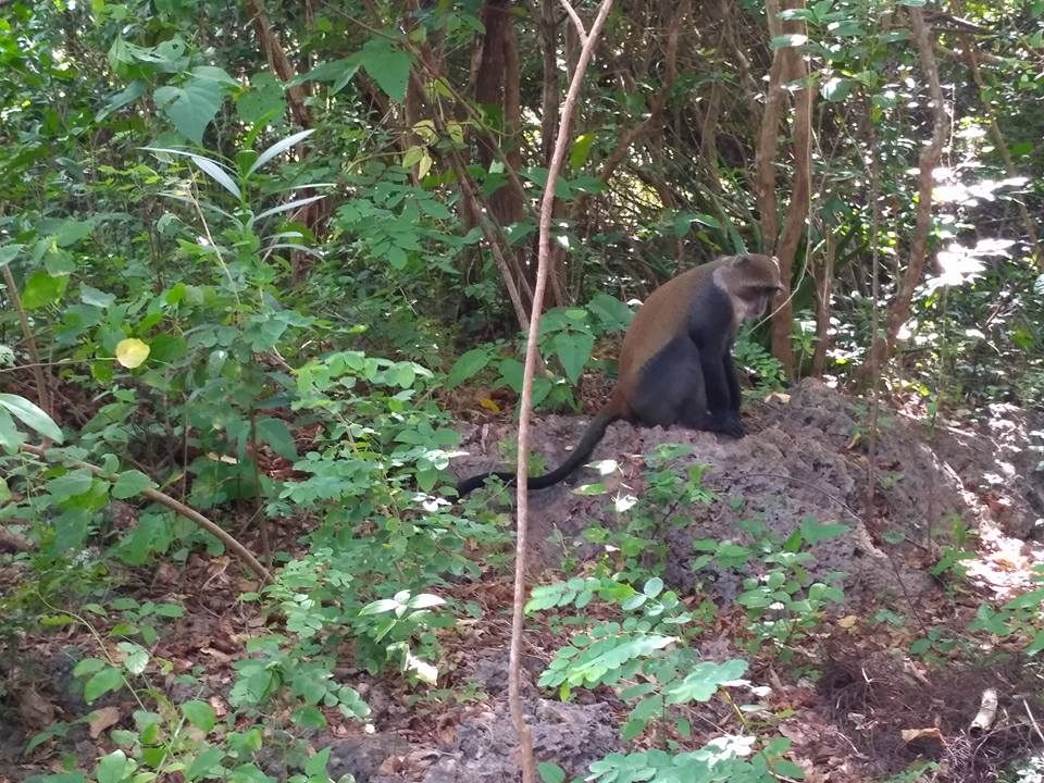 Podczas śniadania Amina, gospodyni naszego hotelu pokazała nam mapę wyspy i objaśniła co się gdzie znajduje. Przyszła też małpa, poczęstowała się skórkami z naszych owoców. Kilka metrów od naszego tarasu przemknął metrowy jaszczur! Ponoć jest ich tu więcej.