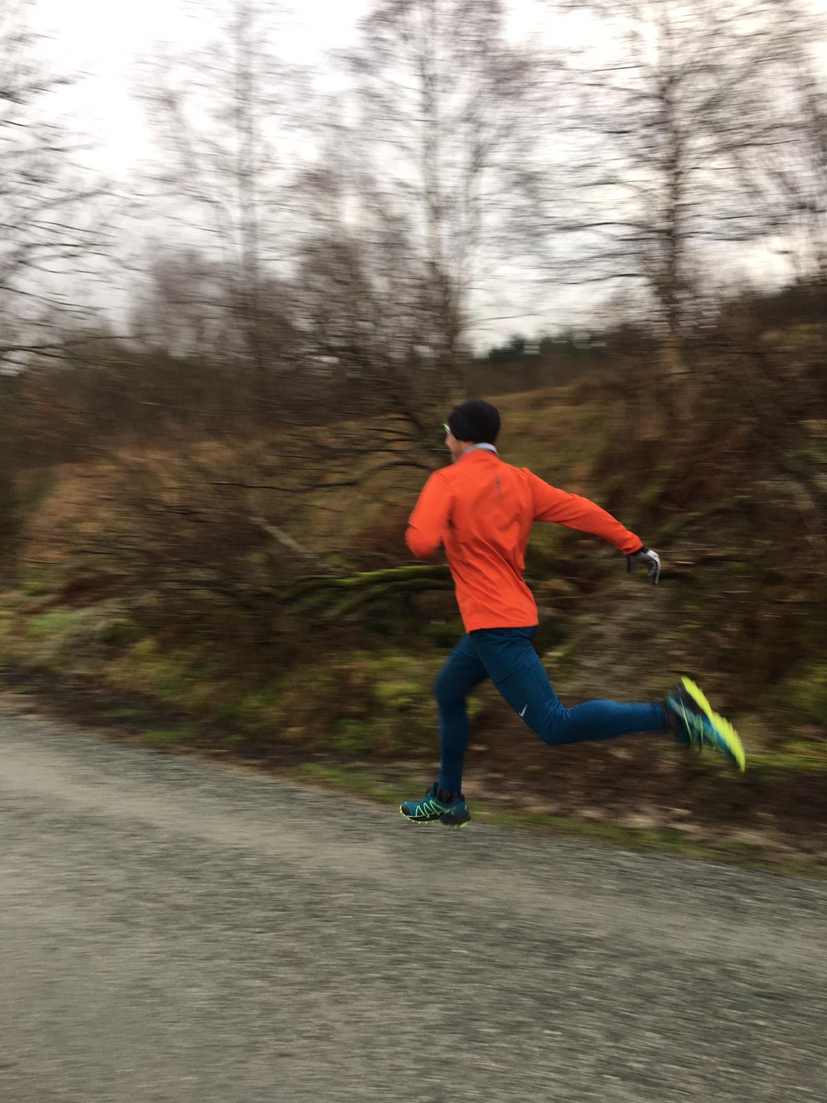 Długie rozbiegania max do 90 minut, tempa 5:30-6:00. Na biegach ciągłych zacznij bawić się lądowaniem na śródstopiu. Zajmij tym głowę i nie piłuj tempa.